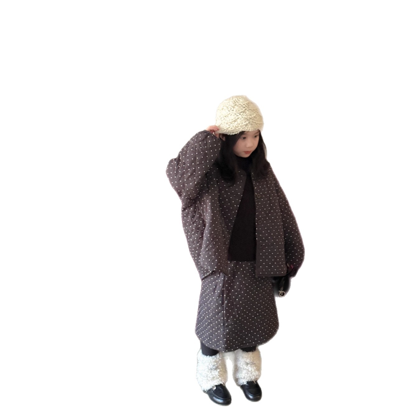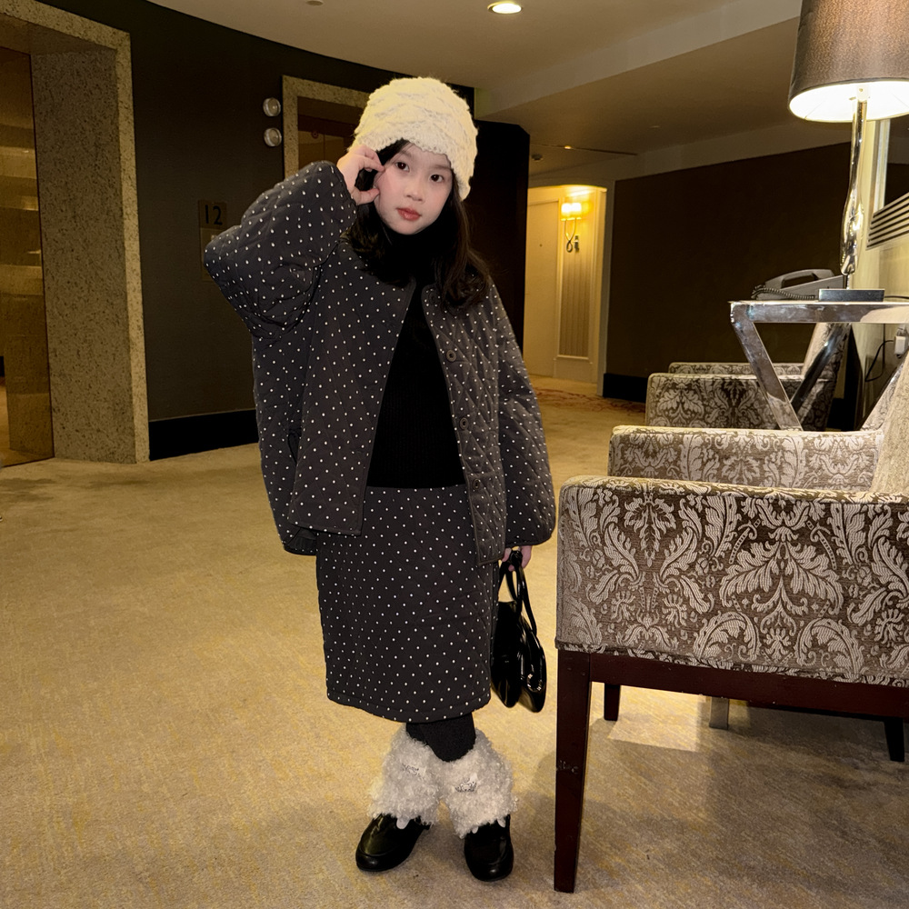 女童波点半身裙2025冬季新款