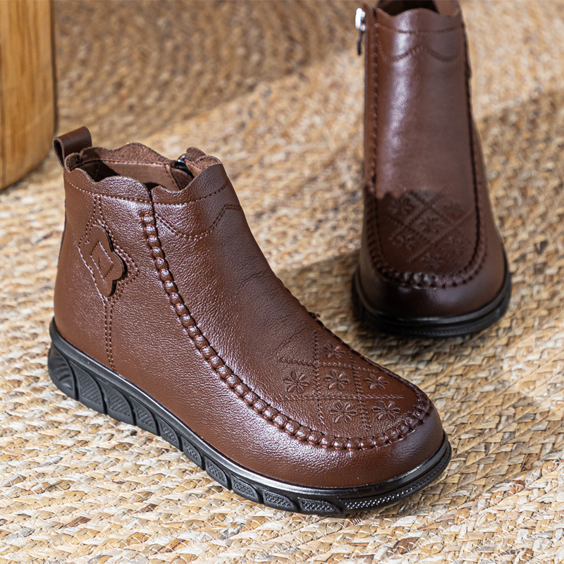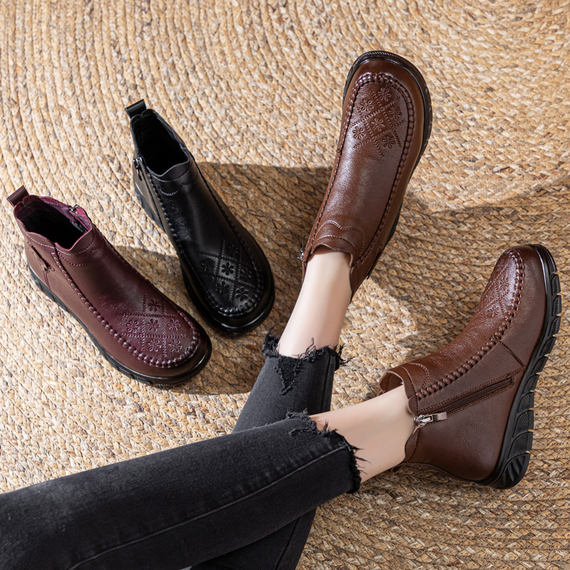 女鞋2025冬季新款皮棉鞋加绒保暖中老年妈妈二棉皮鞋防水防滑软底