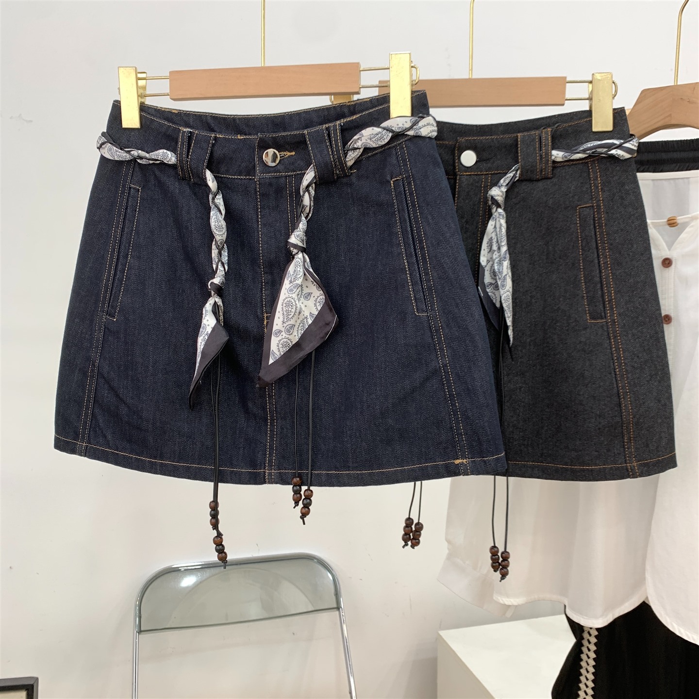 半身裙秋季新款纯色宽松高腰显瘦休闲百搭牛仔短裙J#5