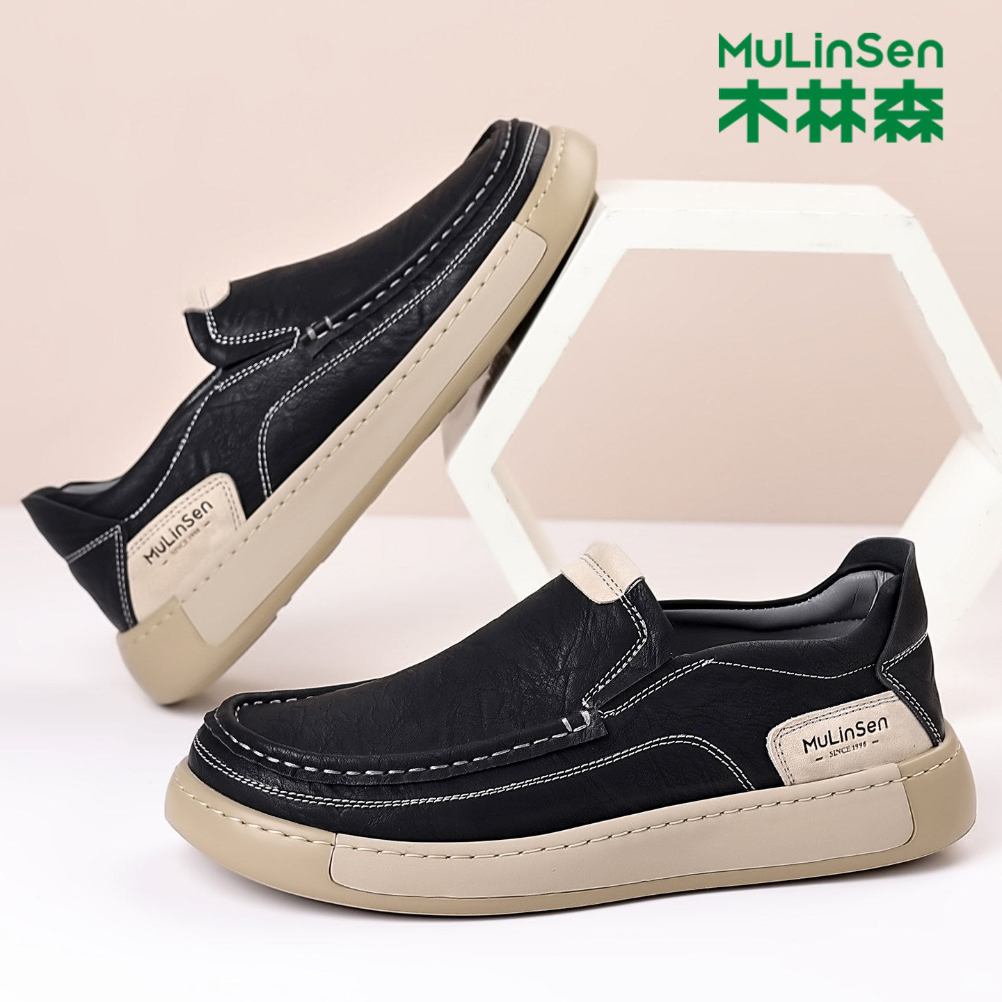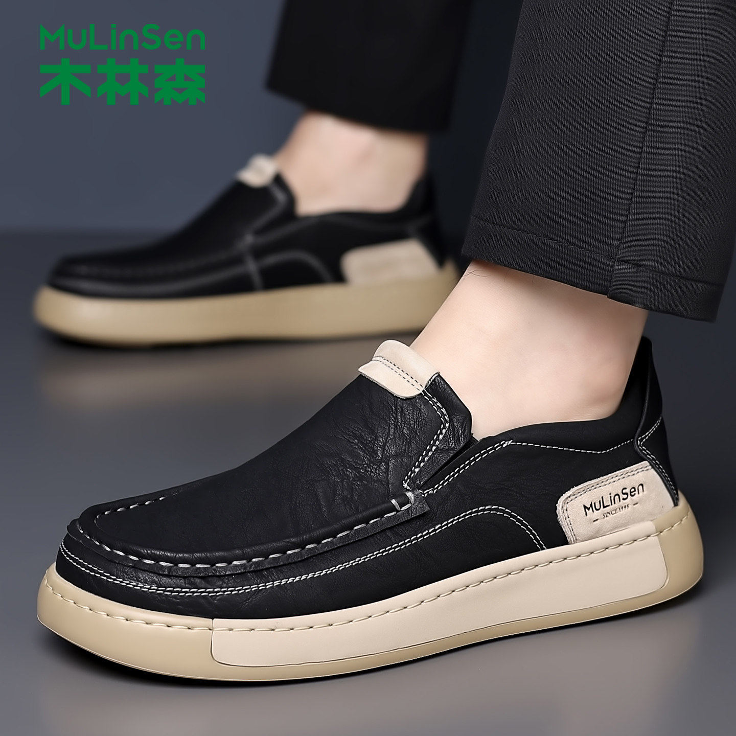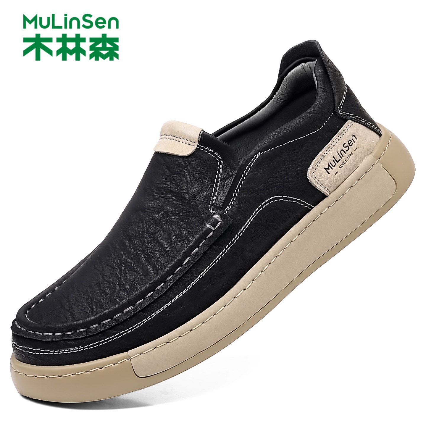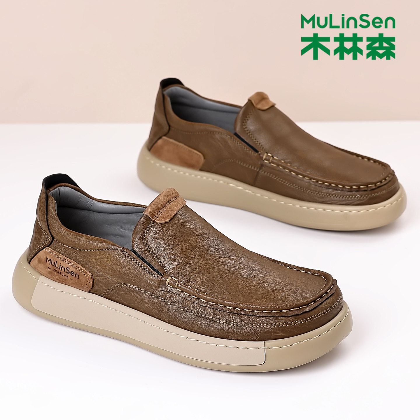 木林森男鞋2025新款休闲 皮鞋男款防滑透气高端一脚蹬宽松大头男