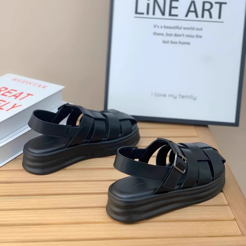 包头编织凉鞋女2025夏季新款厚底百搭镂空猪笼鞋复古皮带扣罗马鞋