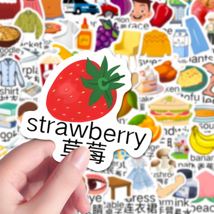260张小学专用英语贴纸儿童常用简单单词启蒙笔记本手账贴画防水