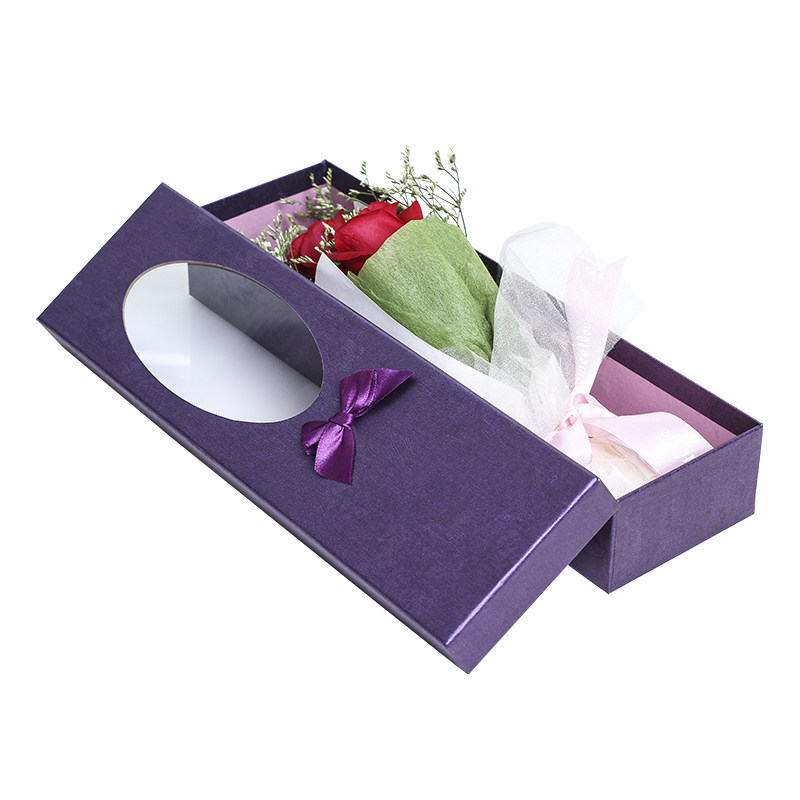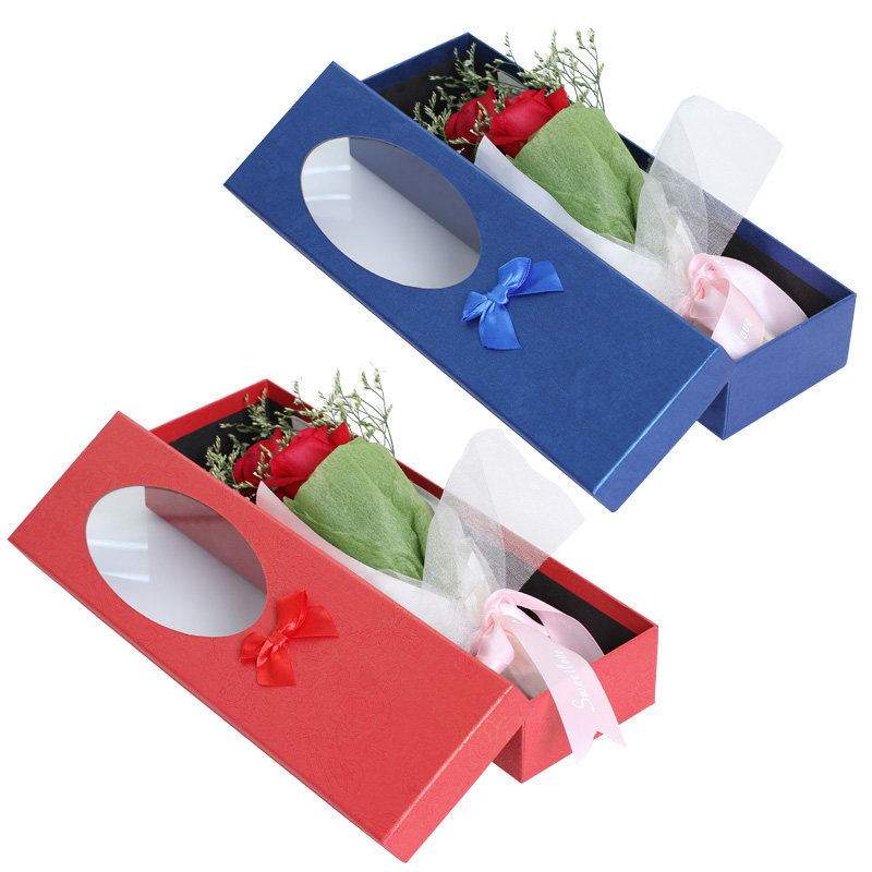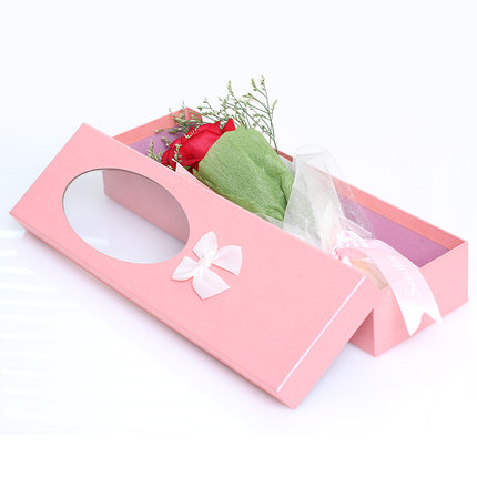 七夕情人节单支玫瑰鲜花盒长方形透明开窗礼盒520生曰礼物包装盒
