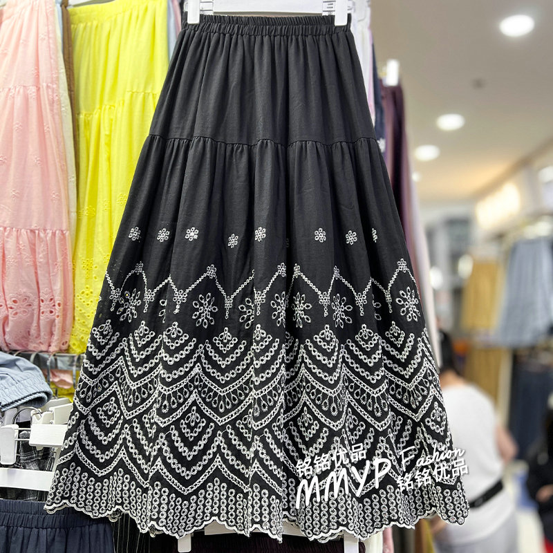 秋季好看高级镂空刺绣蓝色半身裙女2025新款a字裙子伞裙半裙长裙
