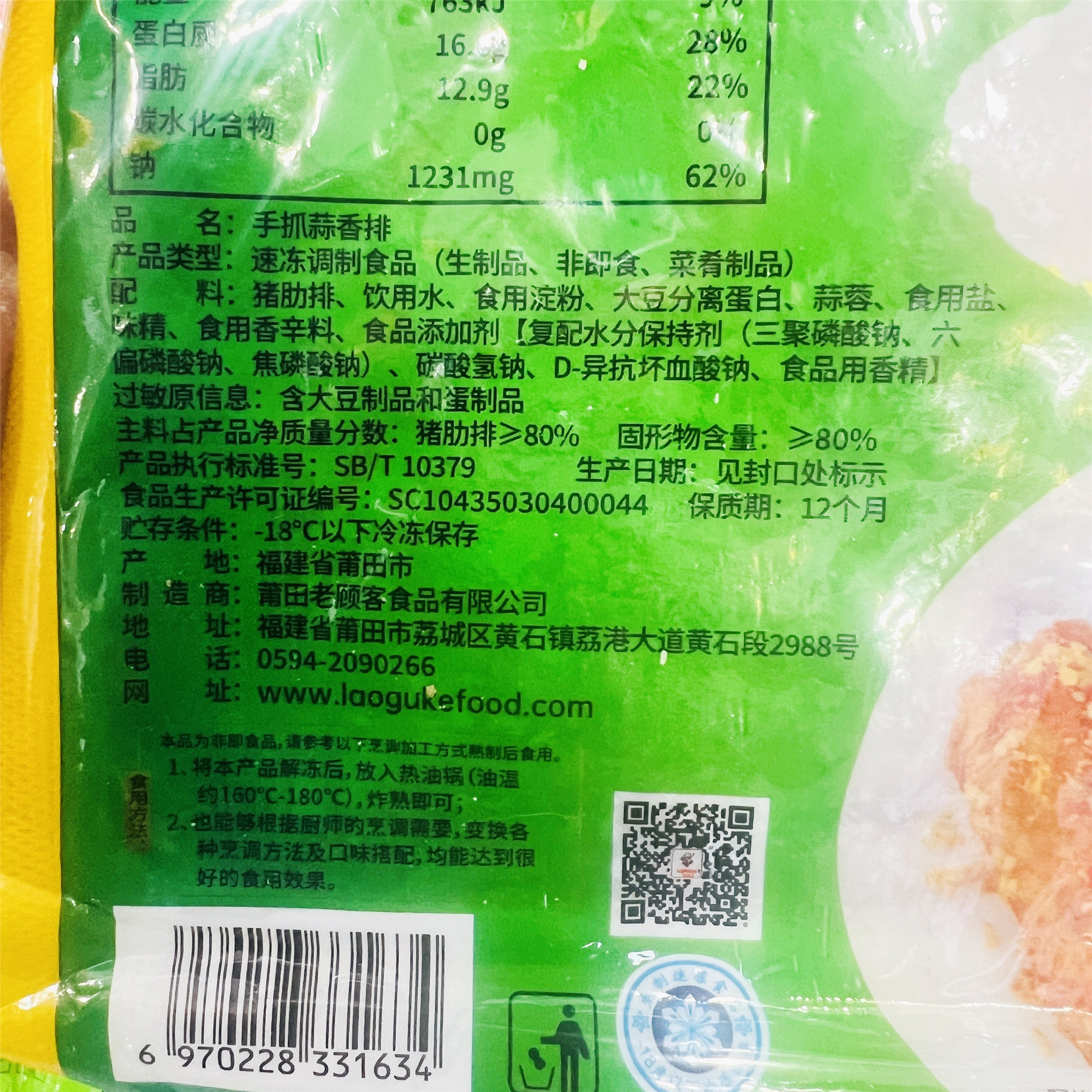 老顾客手抓蒜香排整箱800g10包长蒜香骨猪肋排猪排骨条油炸半成品