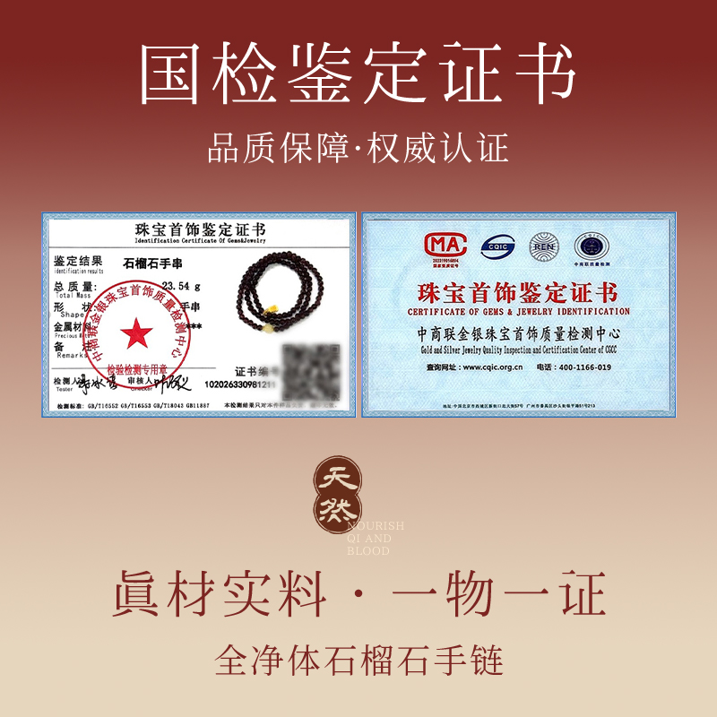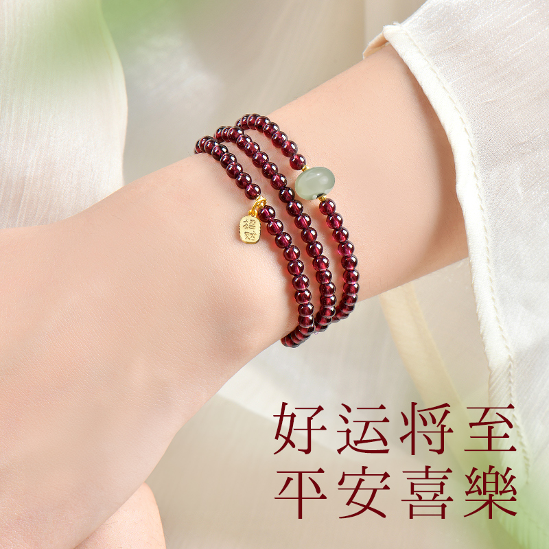 宫中礼纯天然石榴石手串女款三圈和田玉水晶手链招财转运珠礼物男