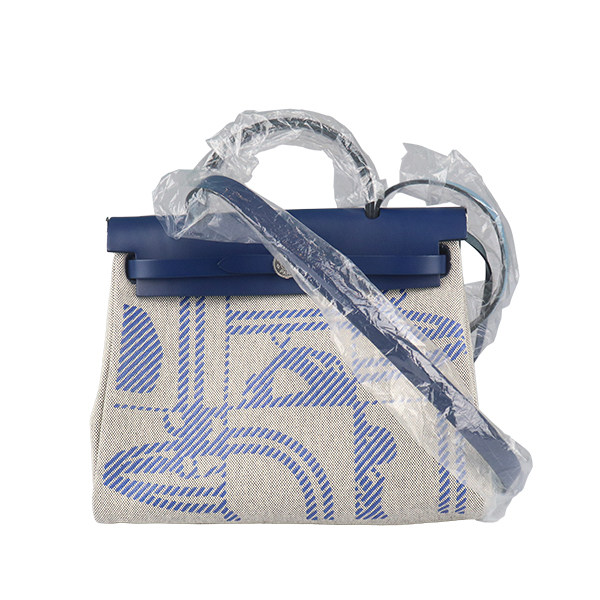 中古「95新」HERMES爱马仕HERBAG限量款法国蓝/米色TOILEH单肩包