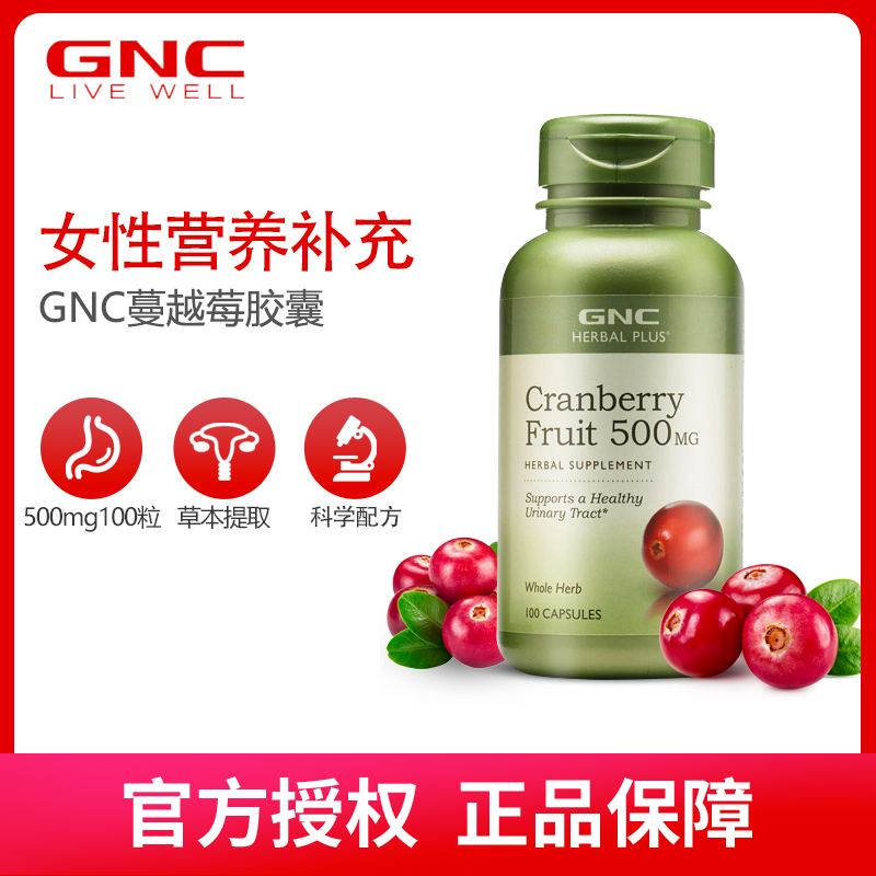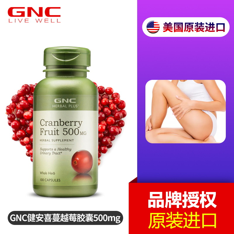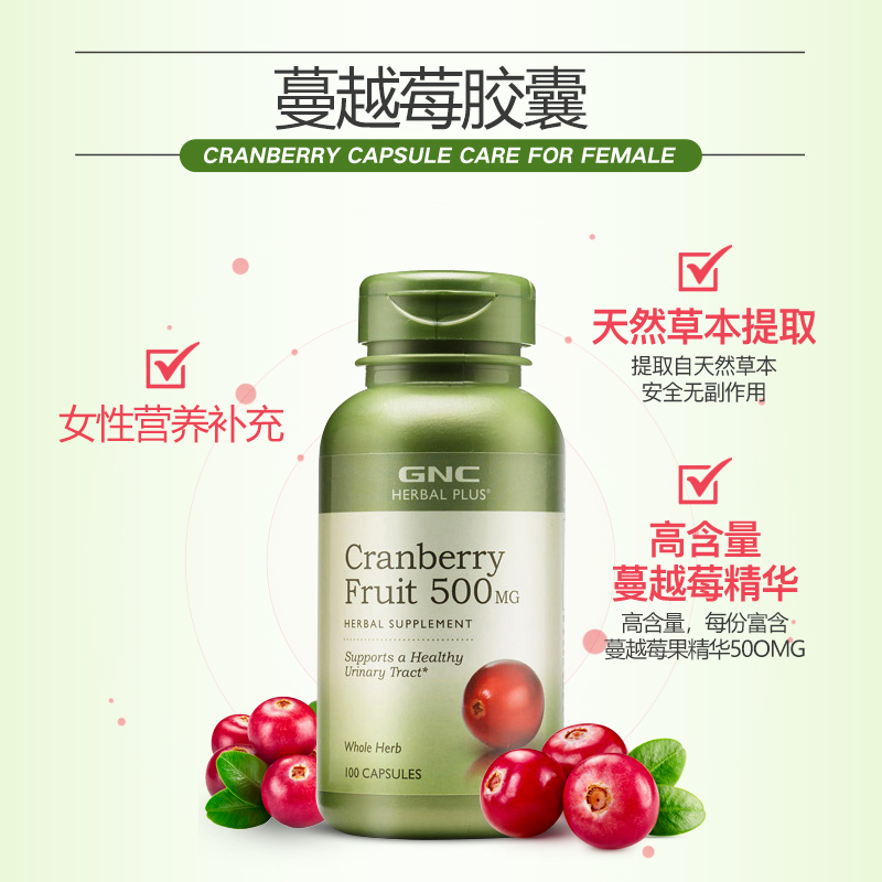 gnc健安喜 cranberry蔓越莓胶囊500mg100粒女性营养 美国原装进口