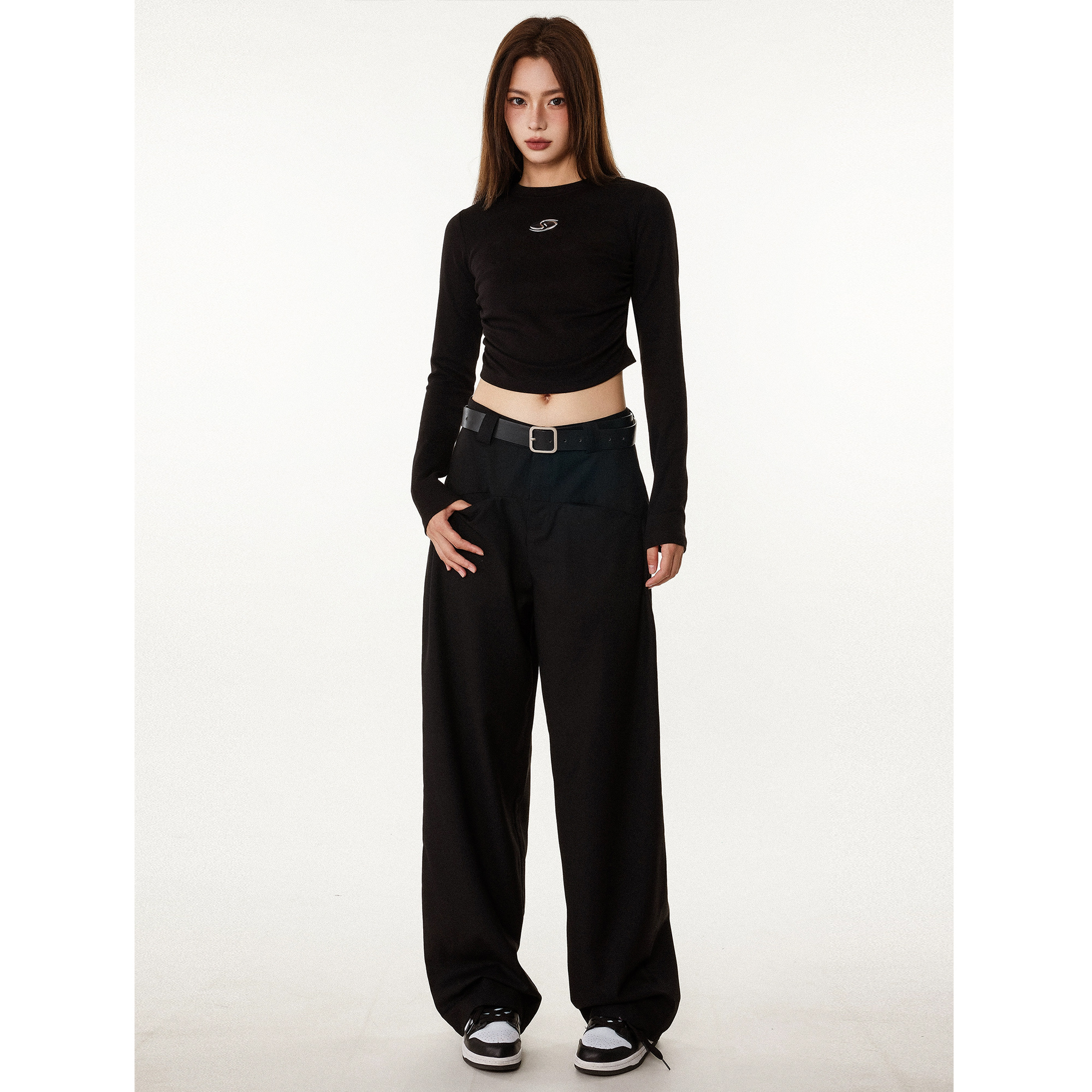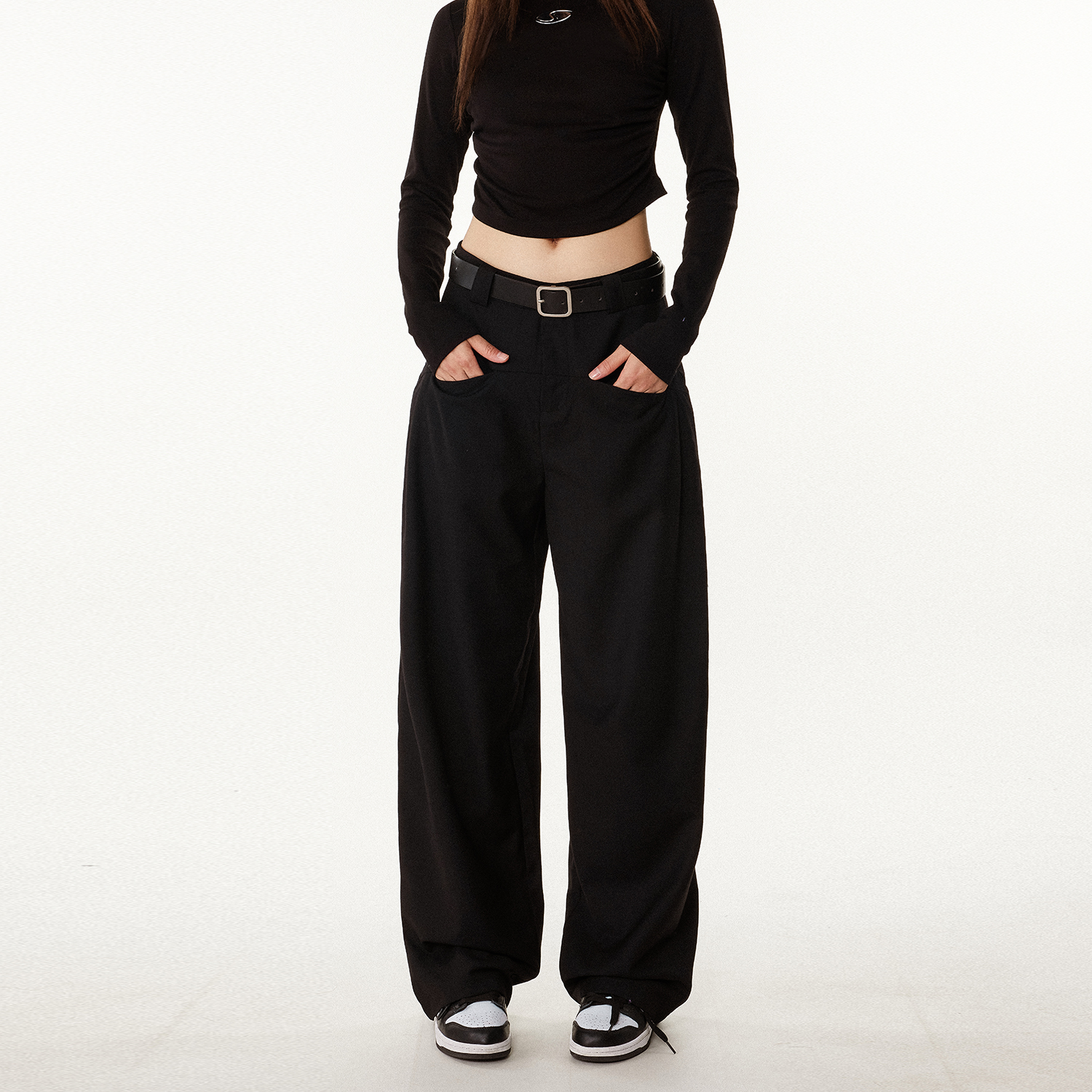 Beikastudios黑色西装裤女宽松直筒裤子春秋垂感显瘦阔腿休闲裤潮