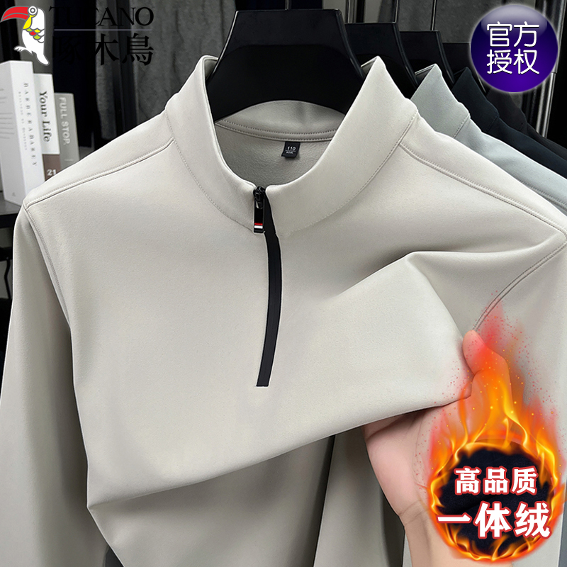 啄木鸟德绒卫衣男加绒加厚男士半拉链长袖t恤立领休闲上衣打底衫