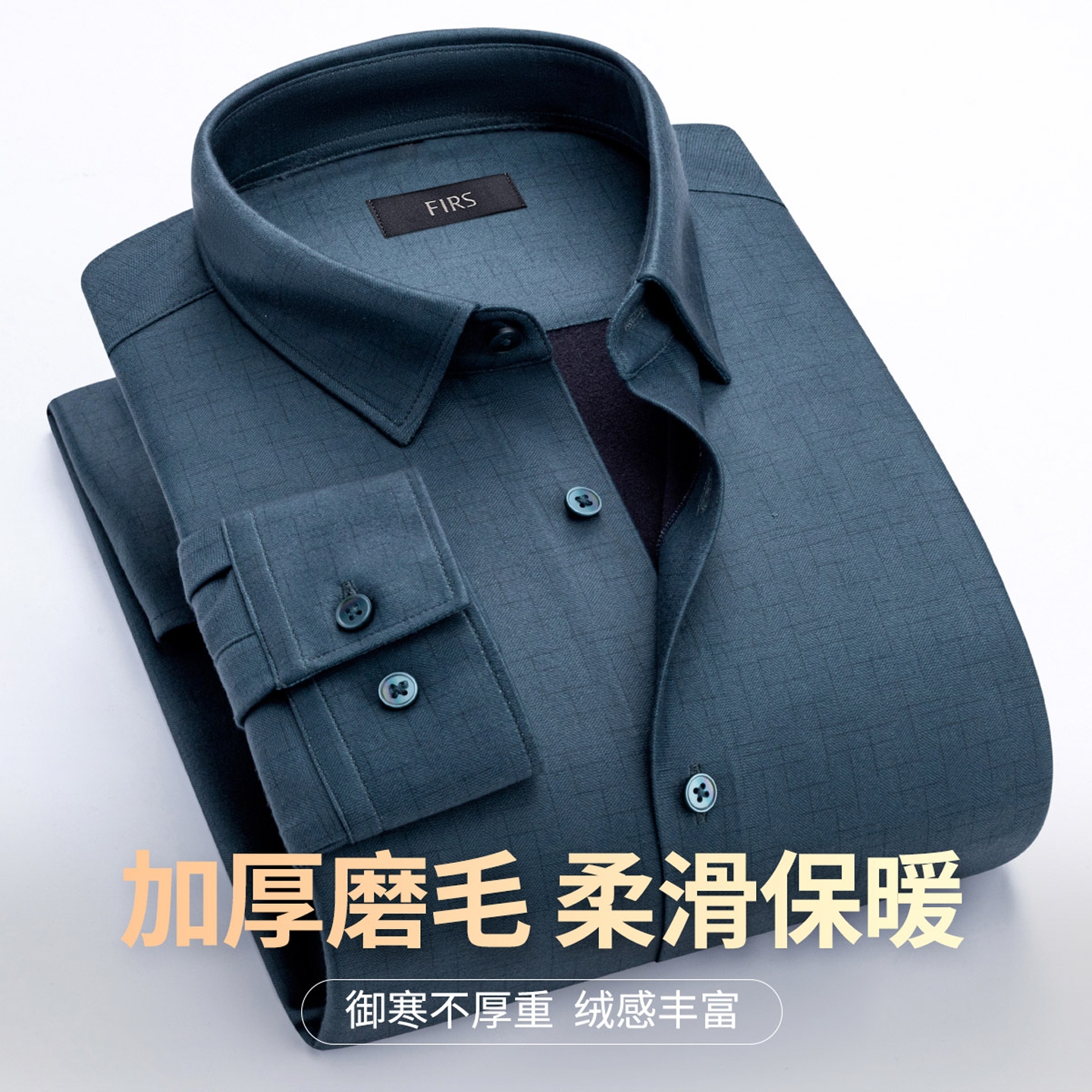 杉杉磨毛加厚保暖含羽毛绒长袖衬衫秋冬新款商务休闲格纹衬衣男士