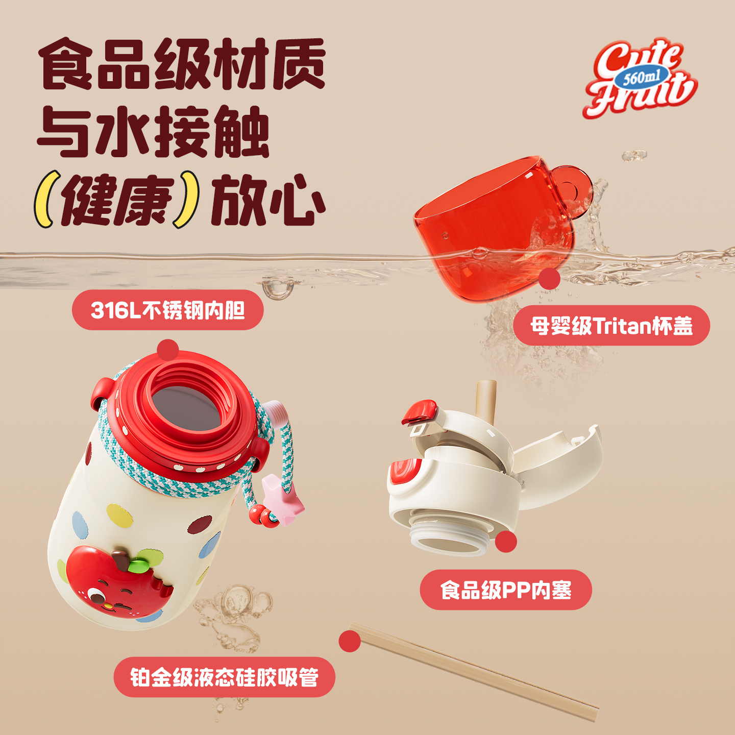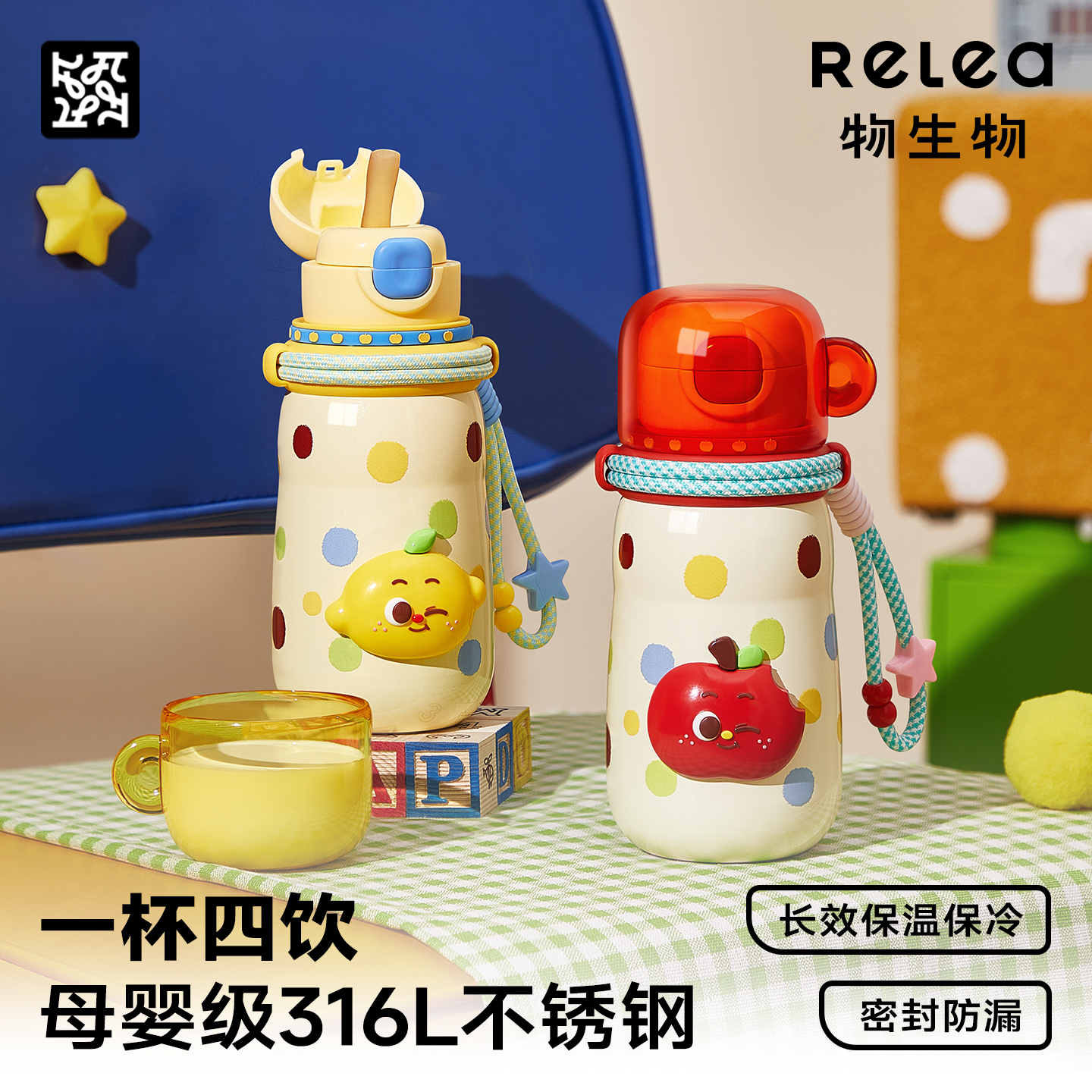 物生物保温杯儿童2025新款高颜值女生杯子小学生上学专用吸管水杯