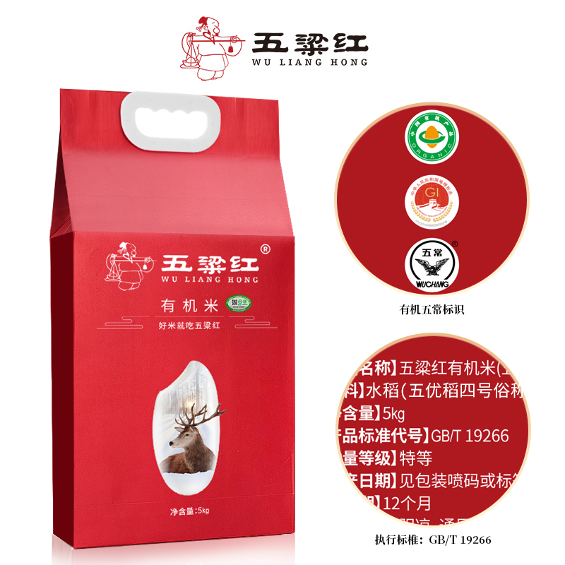 五梁红正宗特等有机五常大米5kg原粮稻花香2号新米黑龙江东北大米