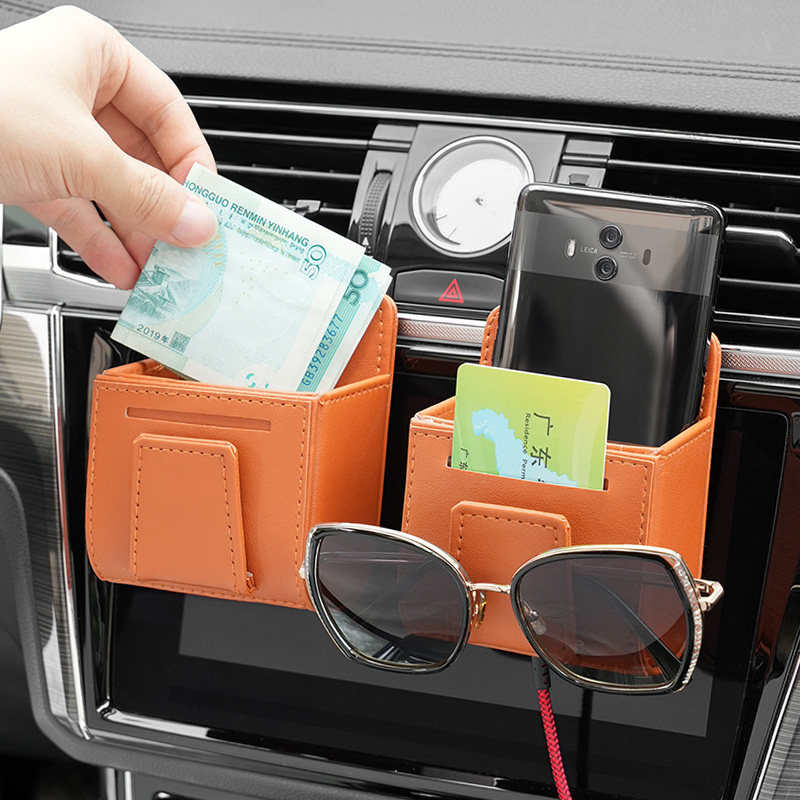 车载收纳挂袋汽车出风口置物袋车用手机卡片储物袋盒小车内饰用品