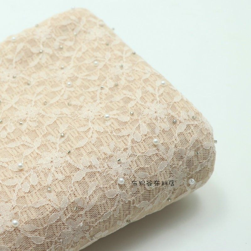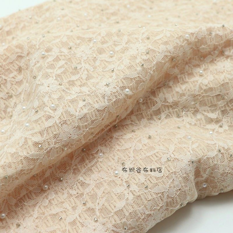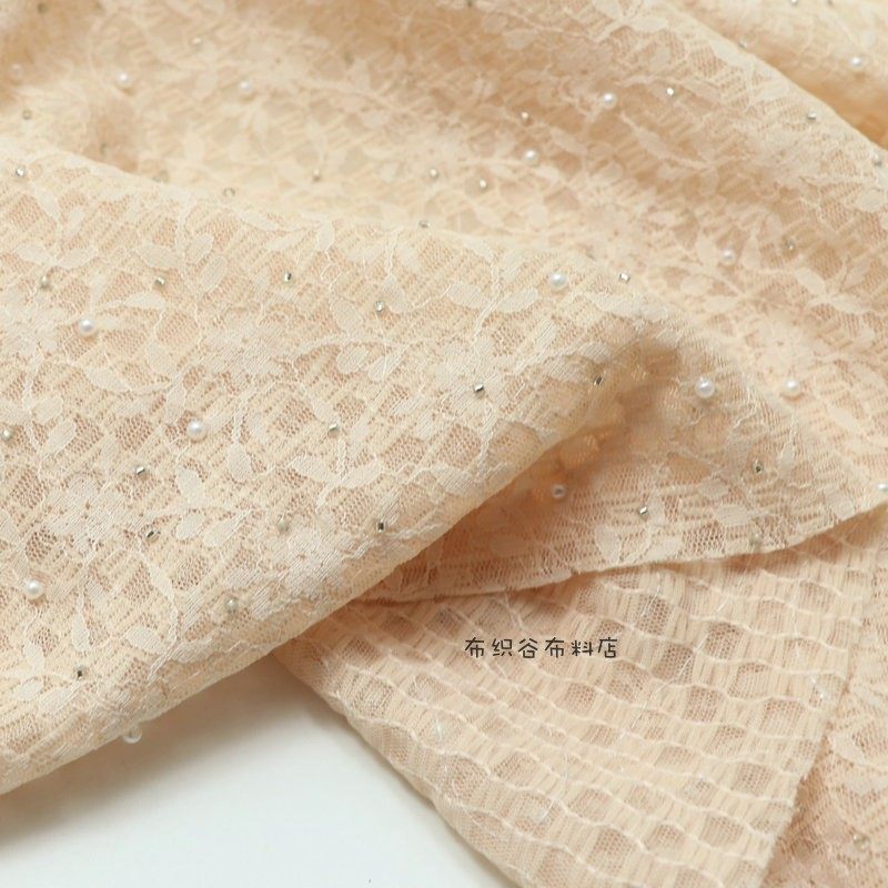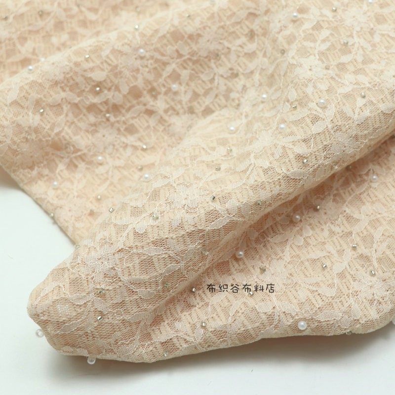 虾粉色提花手工钉珠蕾丝时装布料春秋气质女装连衣裙旗袍服装面料
