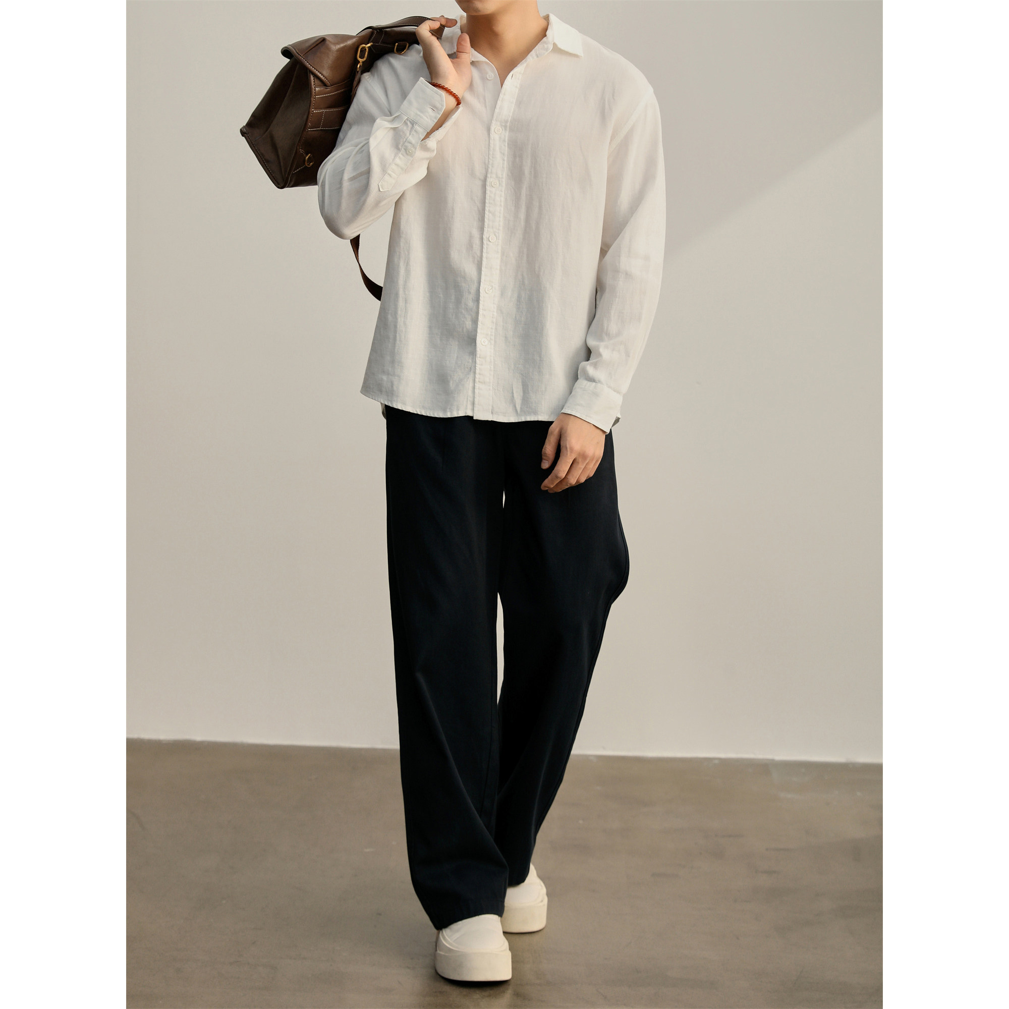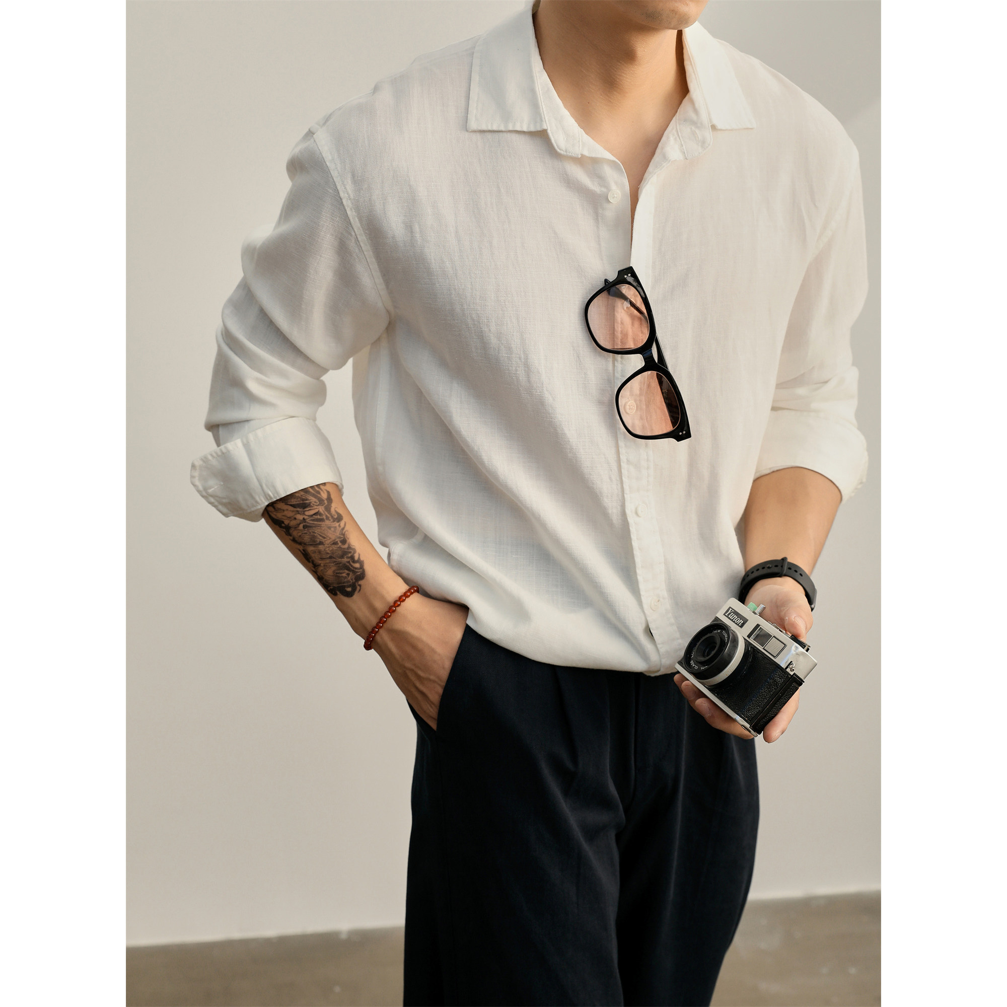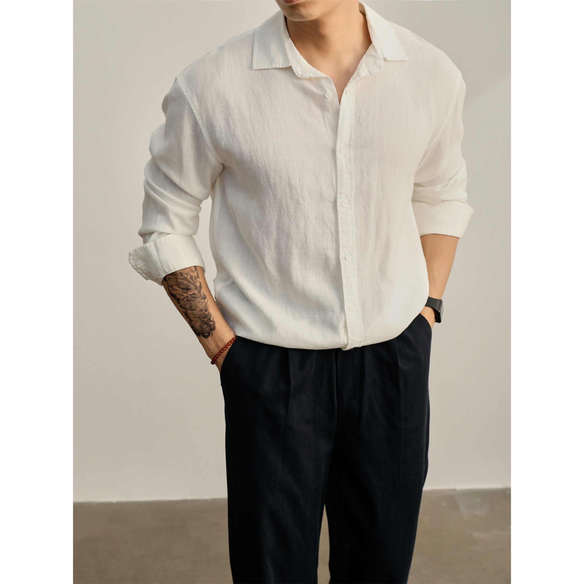 LUUD 儒雅老钱风透气显瘦天丝亚麻长袖衬衫男士秋季极简休闲衬衣