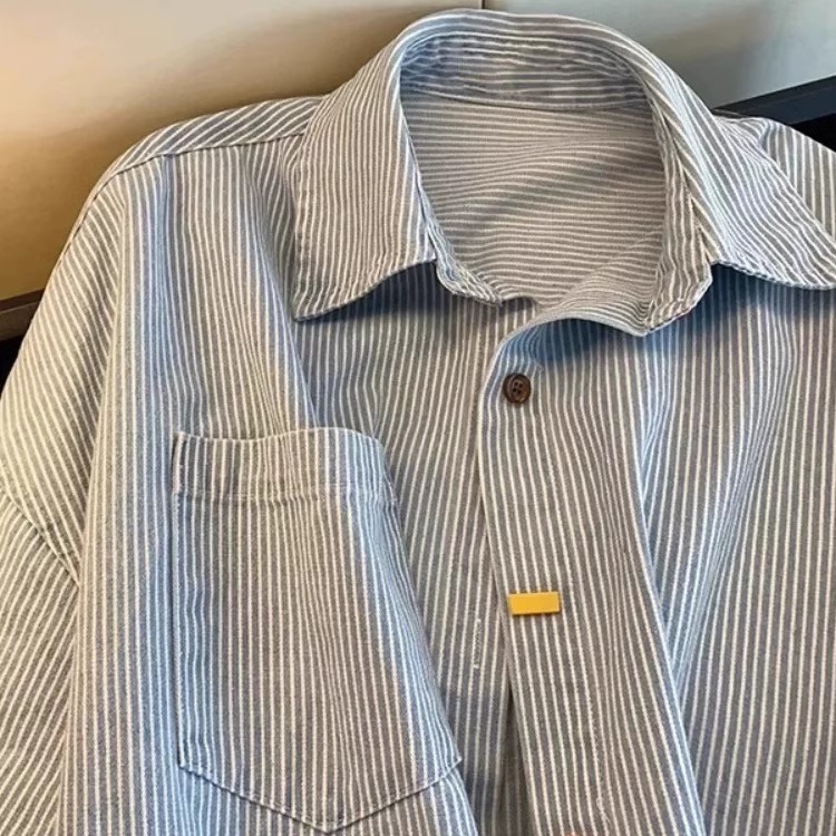 蓝色条纹长袖衬衫女春季