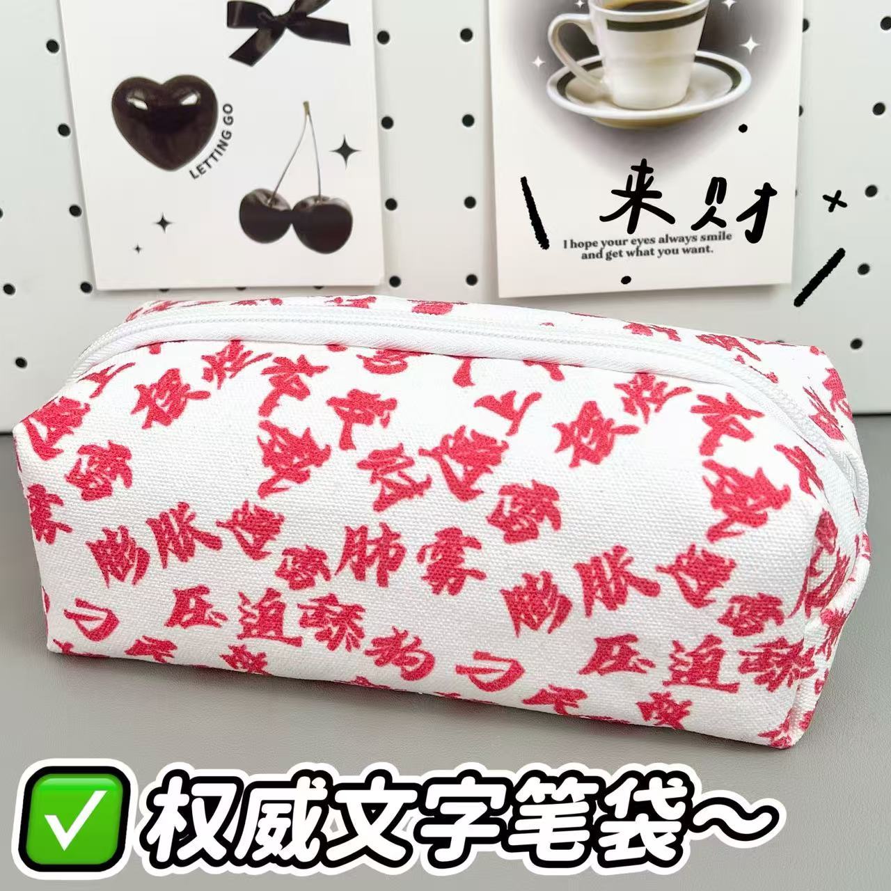 权威文字笔袋印花大容量高颜值搞怪创意学生桌面整理文具收纳笔盒