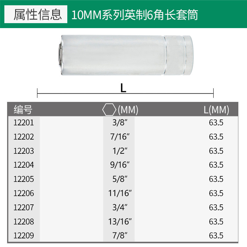 世达工具10MM中飞英制加长内六角套筒 6角加长套筒头 12201-12209