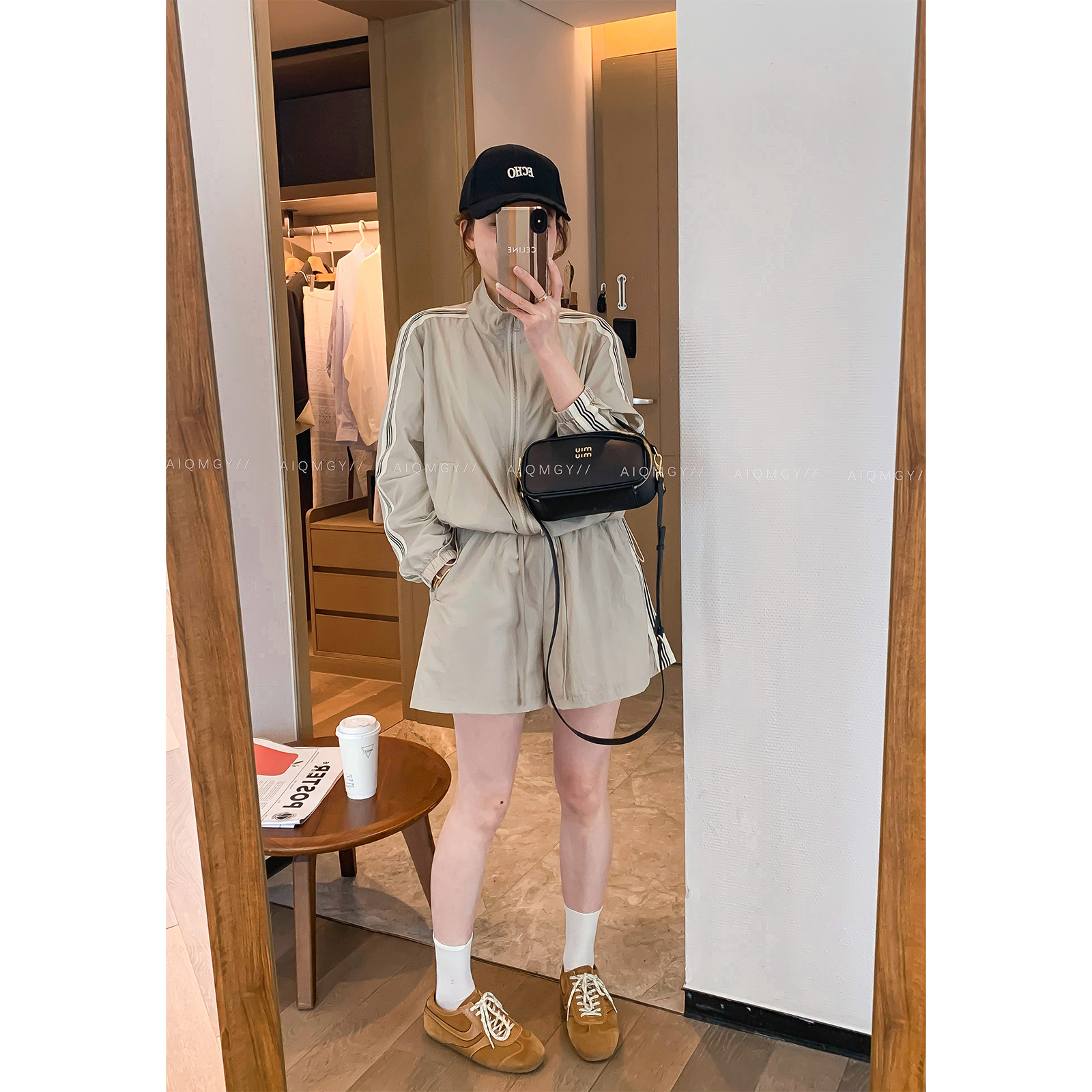 爱情魔鬼鱼 时尚套装女2025秋季新款条纹长袖外套阔腿短裤两件套