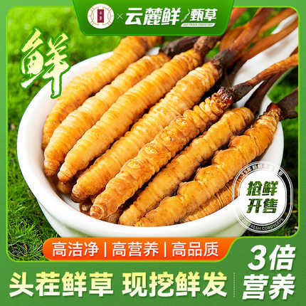 云麓新鲜冬虫夏草官方旗舰店25年头期头茬鲜虫草50根鲜草礼盒顺丰