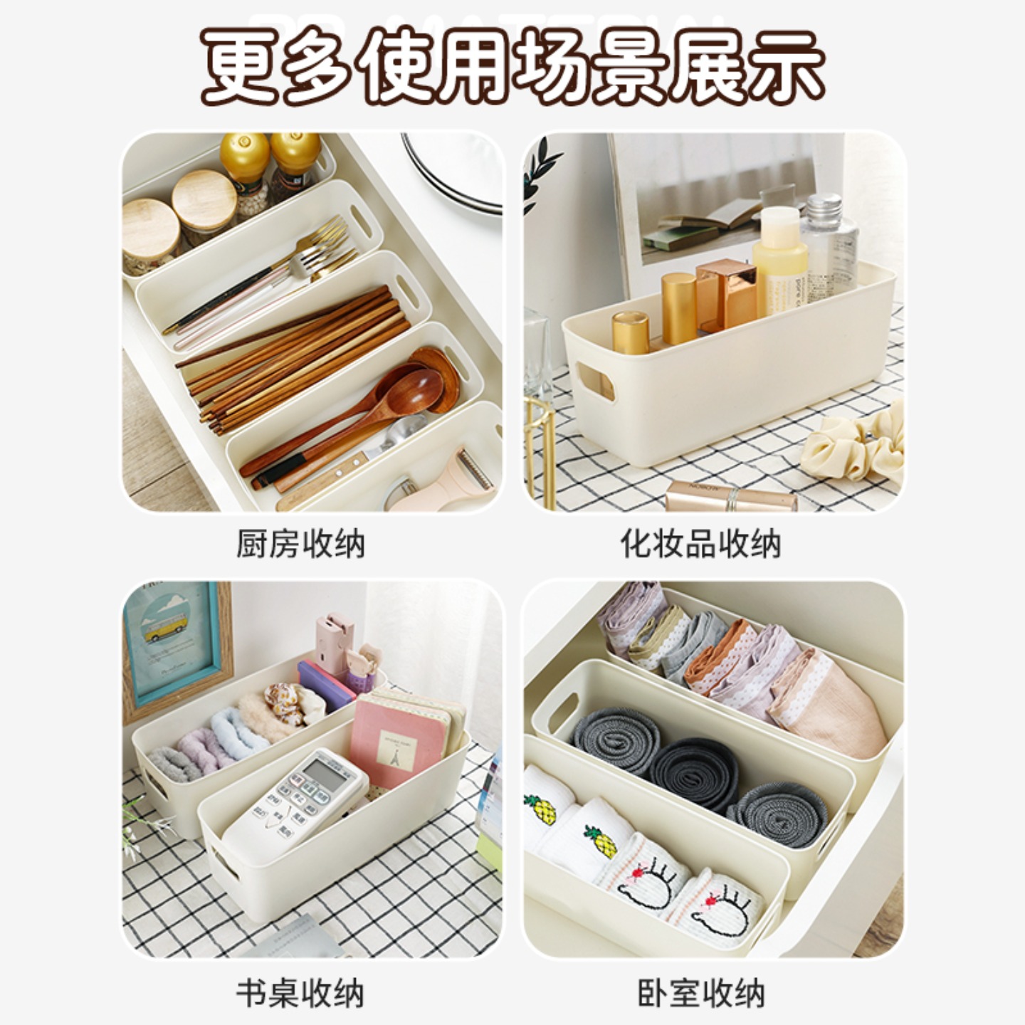 抽屉收纳盒长方形塑料盒子厨房桌上化妆品零食杂物袜子长条整理盒