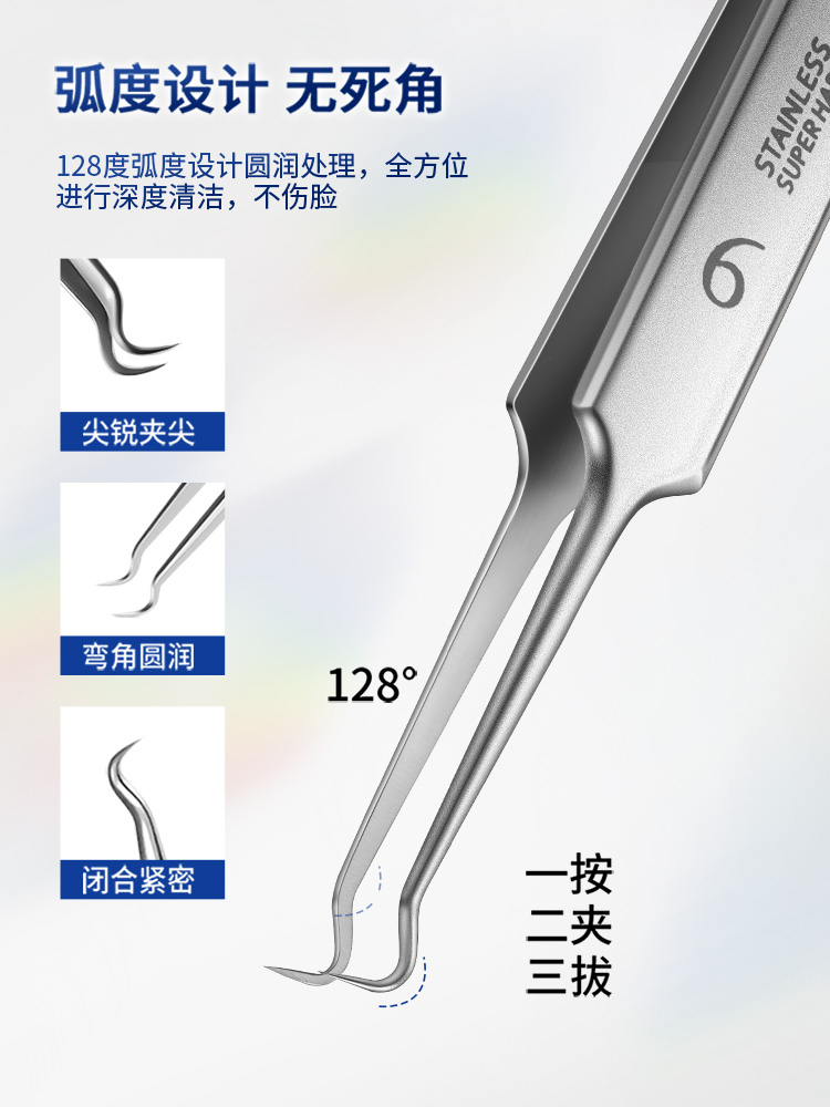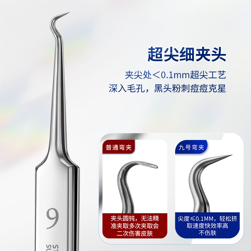 弯钩细胞夹超细粉刺夹去黑头夹子白头美容院祛痘痘针清勾镊子工具