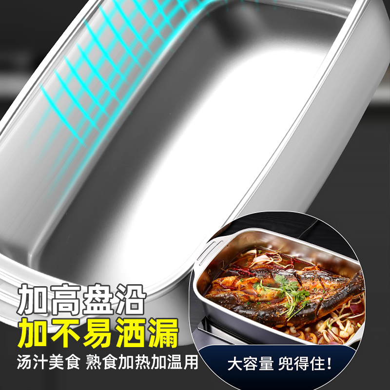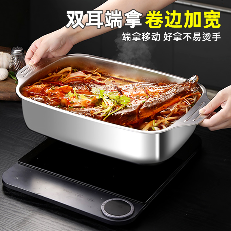 带盖不锈钢烤鱼盘烧烤方盘双耳托盘电磁炉家用烤箱加厚加深电烤盘