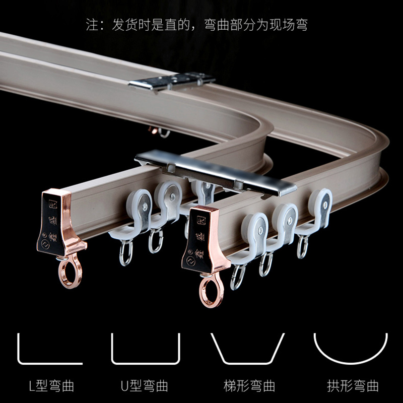 鑫盛园重型窗帘弯轨可弯曲轨道阳台飘窗U型L型铝合金加厚顶装双轨