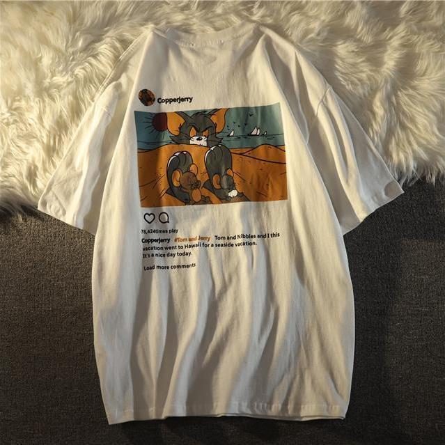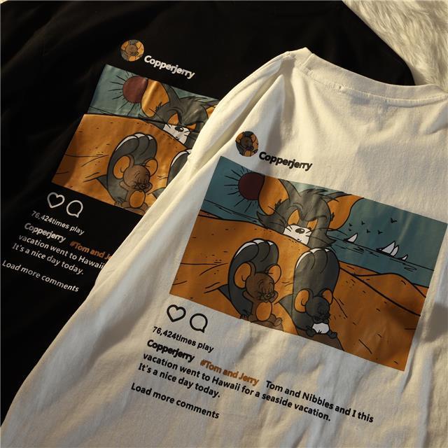 100%纯棉猫和老鼠t恤短袖男女夏季潮流宽松百搭ins韩版上衣情侣装