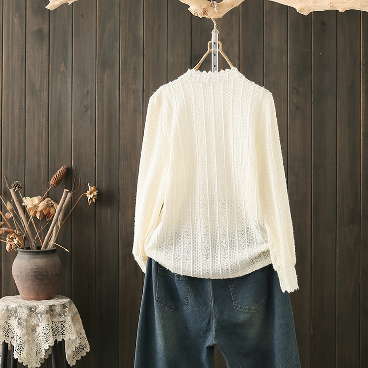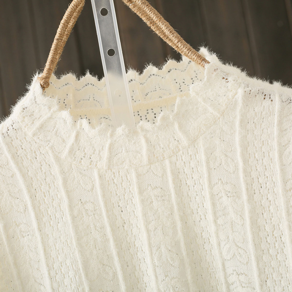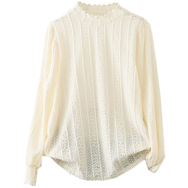 春秋大码200斤胖mm时尚减龄纯色单穿打底百搭蕾丝长袖花边领上衣