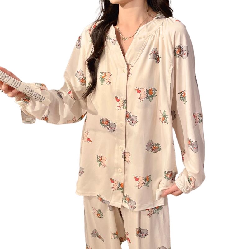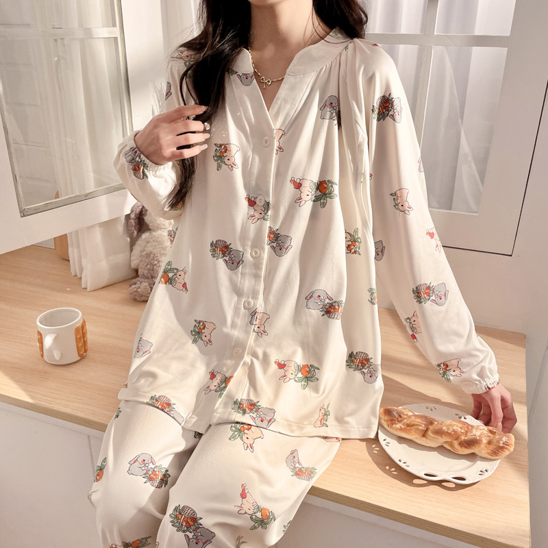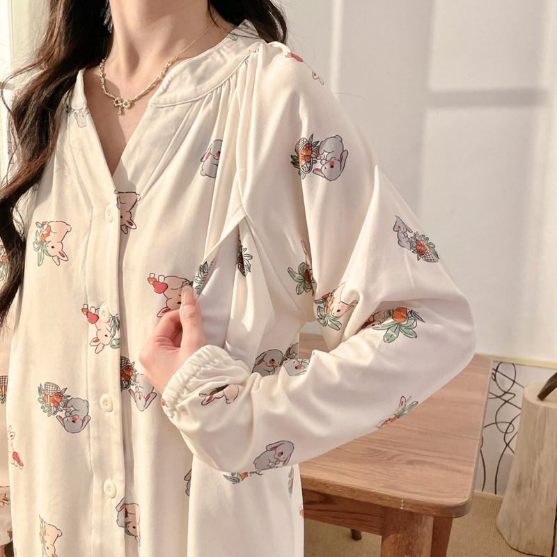 带胸垫月子服春秋a类纯棉7月份8产后四季款大码孕妇睡衣哺乳喂奶9
