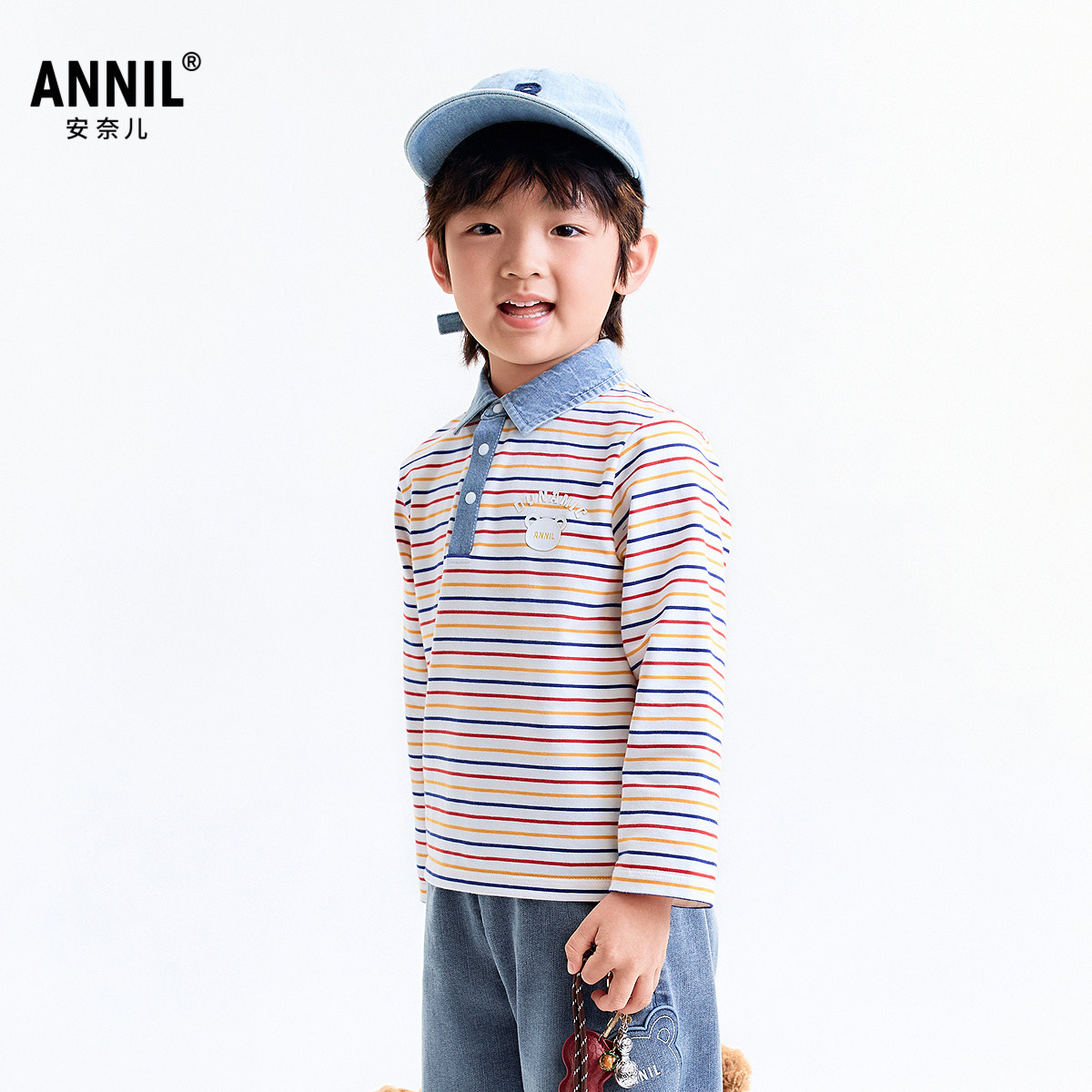 【商场同款】安奈儿童装男童翻领长袖POLO衫秋新款XB531154