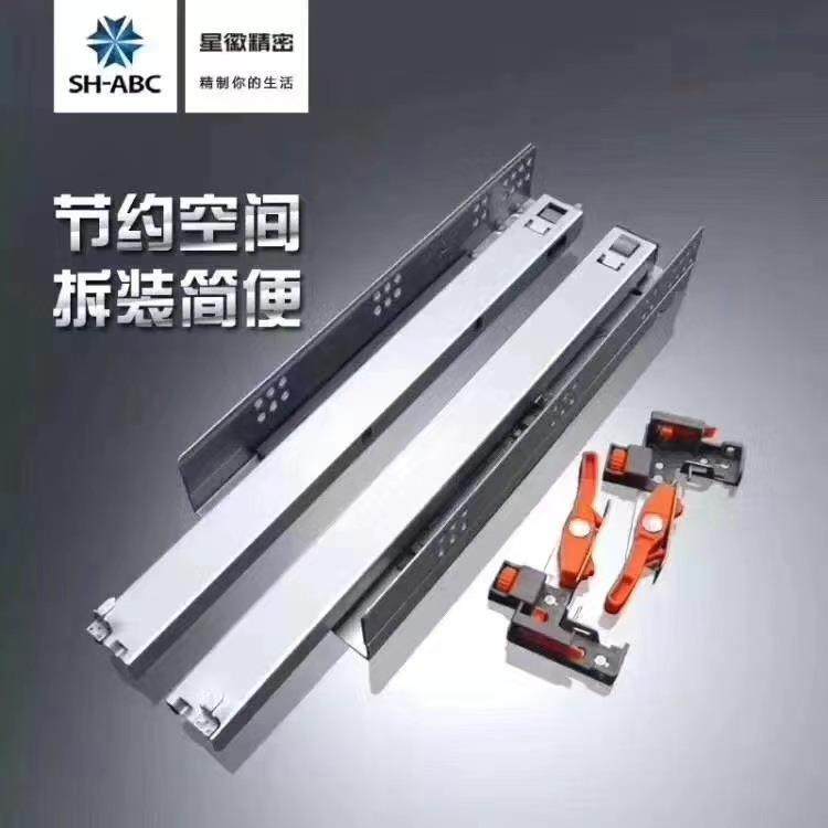 SH-ABC广东星徽N3F1三节橱柜托底缓冲隐藏式滑轨阻尼导轨抽屉轨道