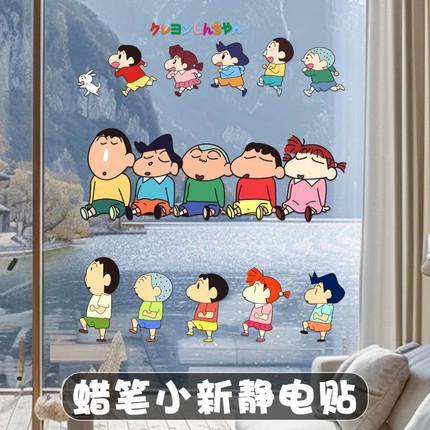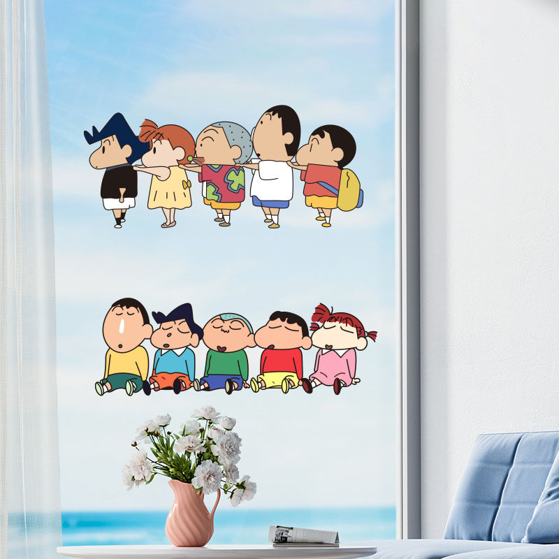 蜡笔小新镜子装饰贴纸卫生间镜面可爱贴画浴室玻璃门防水贴膜厨房