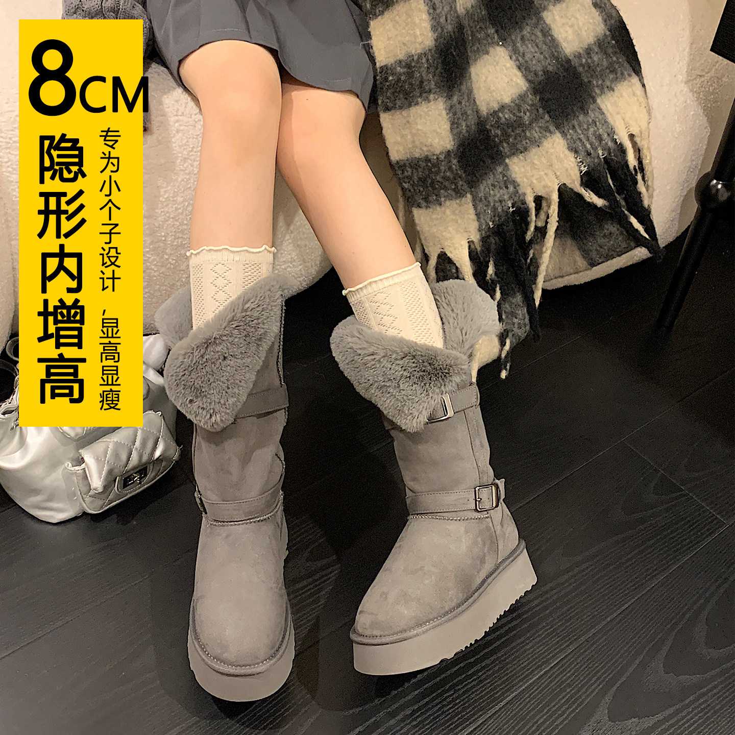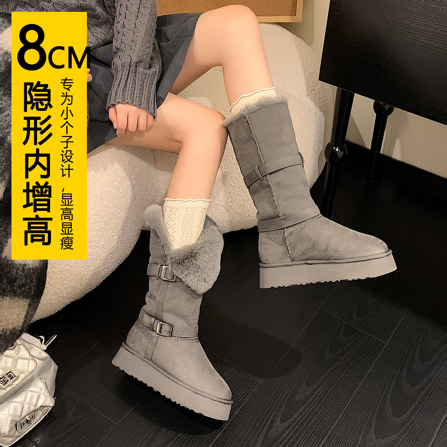 防水长筒灰色雪地靴女2025冬季新款厚底内增高加绒加厚雪地棉鞋女