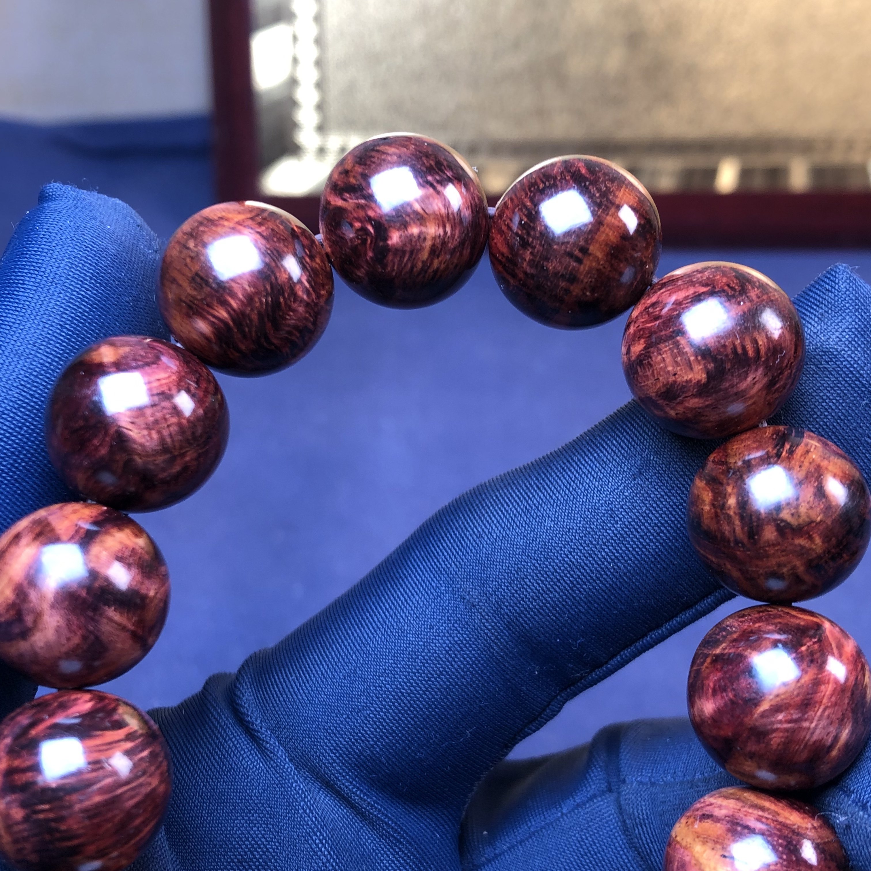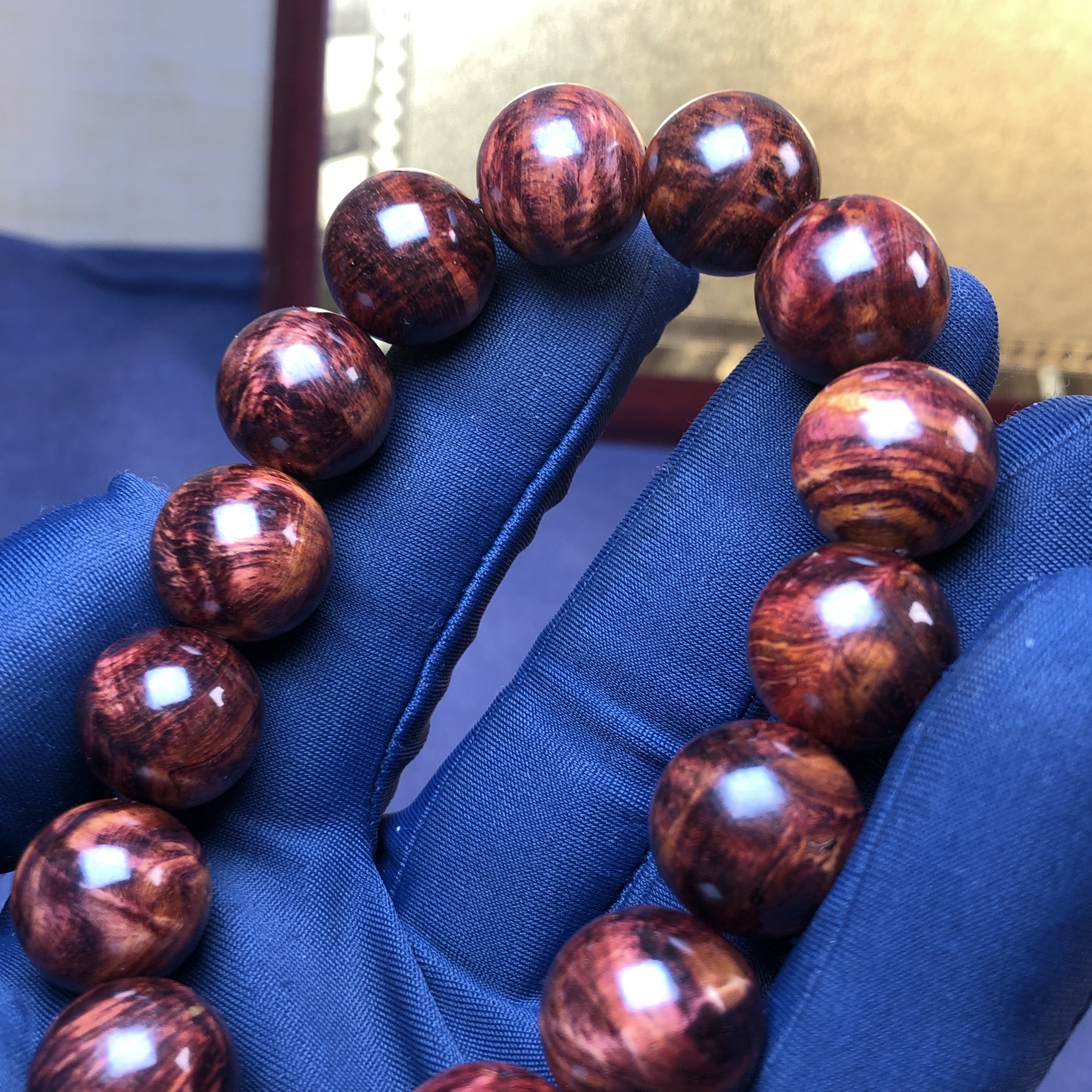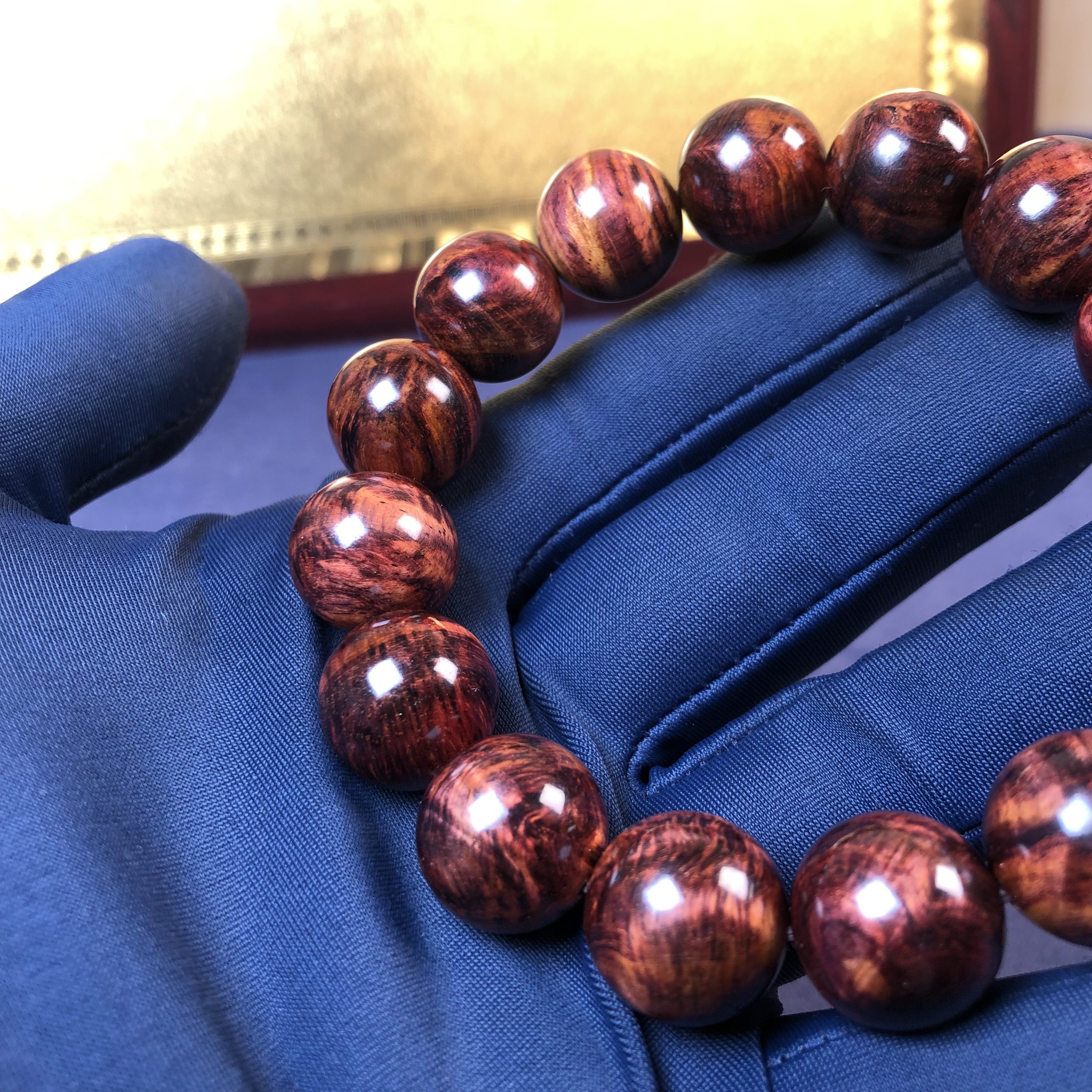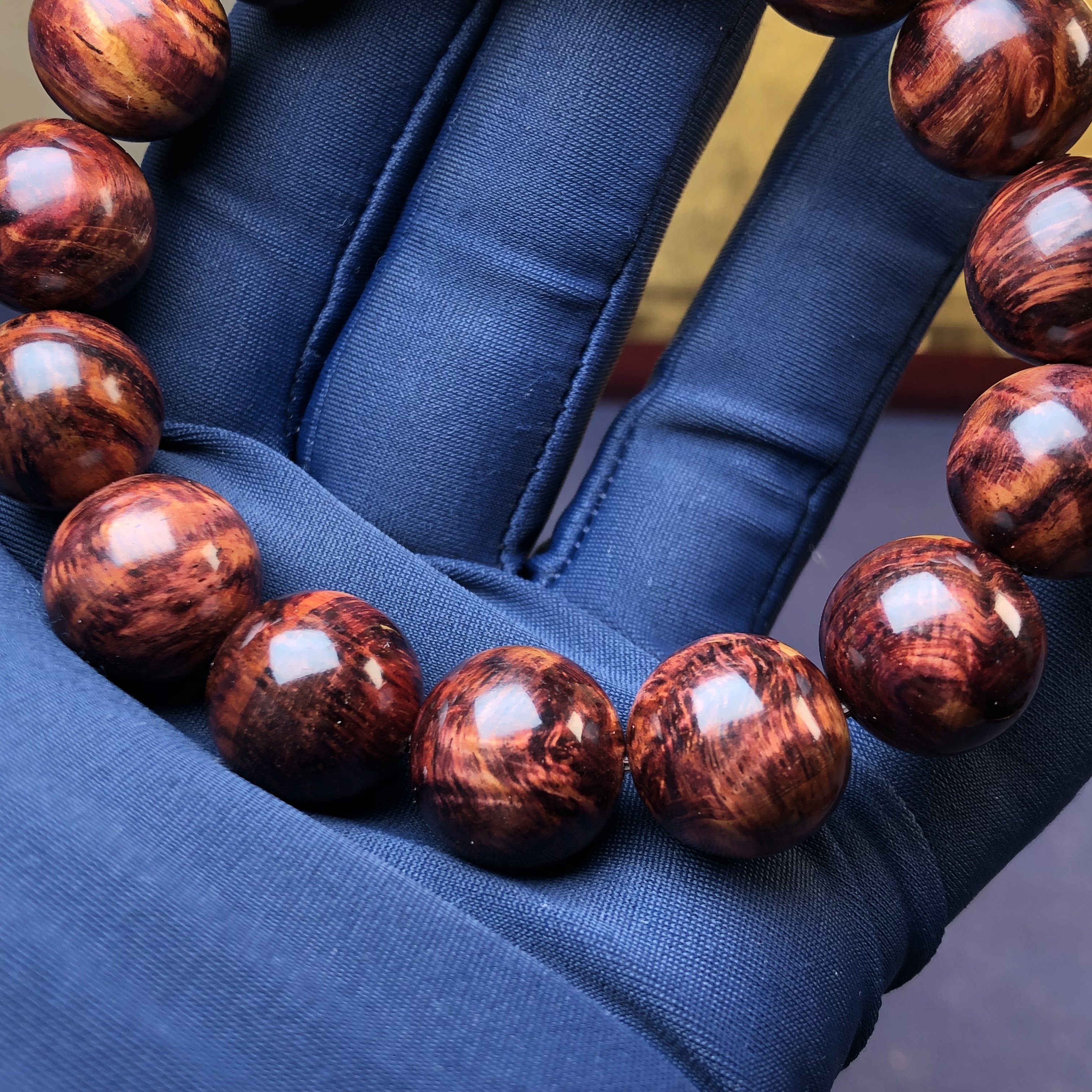 正宗海南黄花梨手串1.5野料油梨水波留疤荧光感文玩佛珠单圈手链