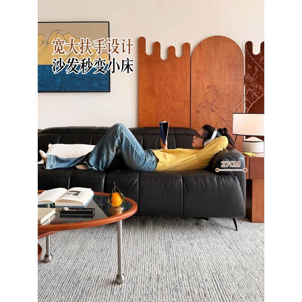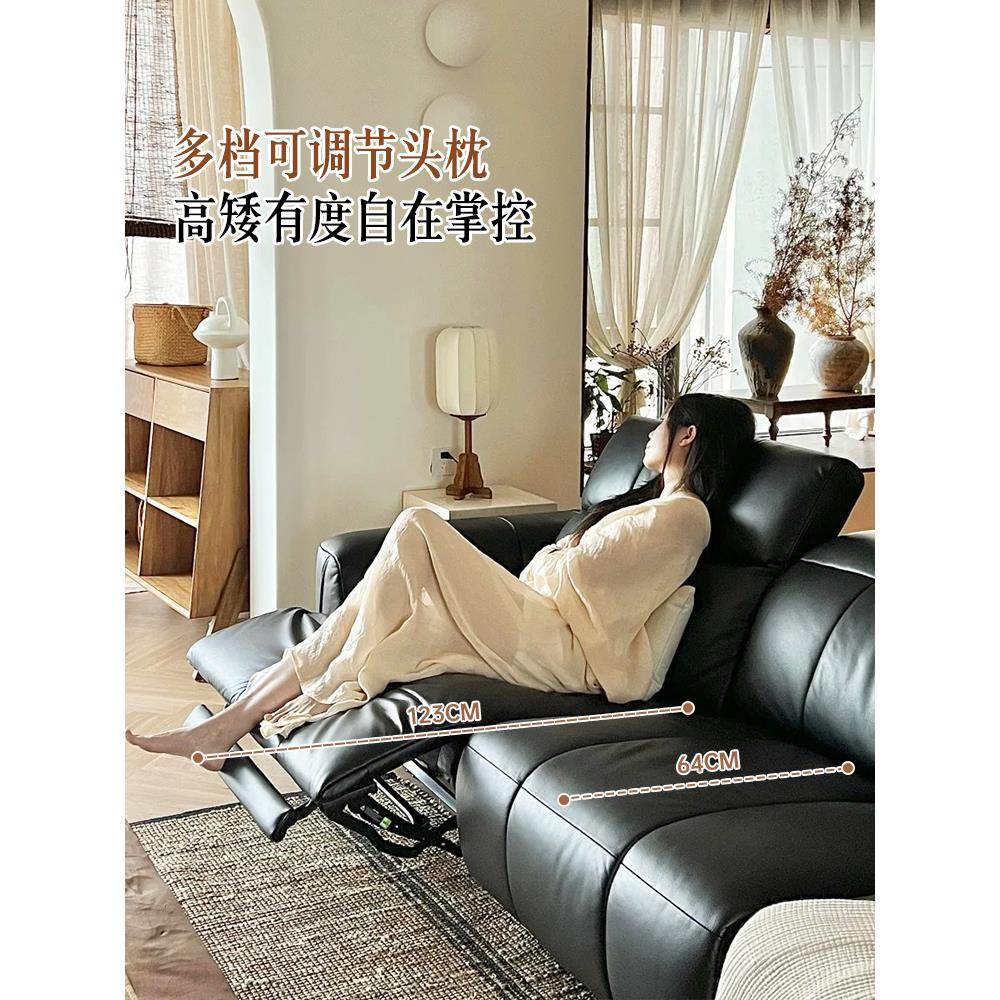 希曼妮零靠墙电动功能真皮沙发头层牛皮可调节大平层黑色赫兹沙发