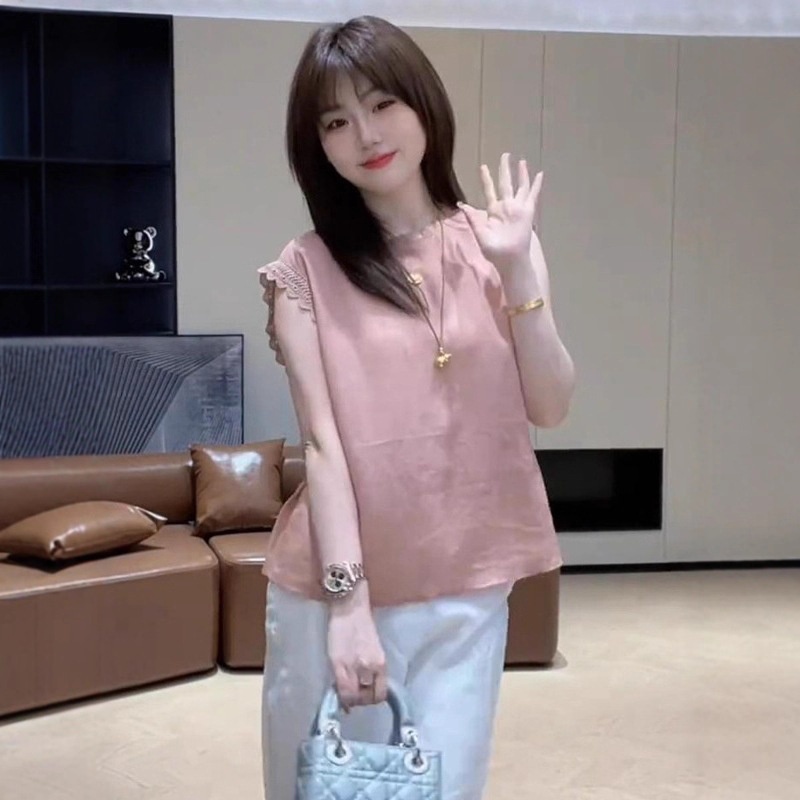 韩系圆领蕾丝花边无袖衬衫女2025夏季新款宽松显瘦独特超好看