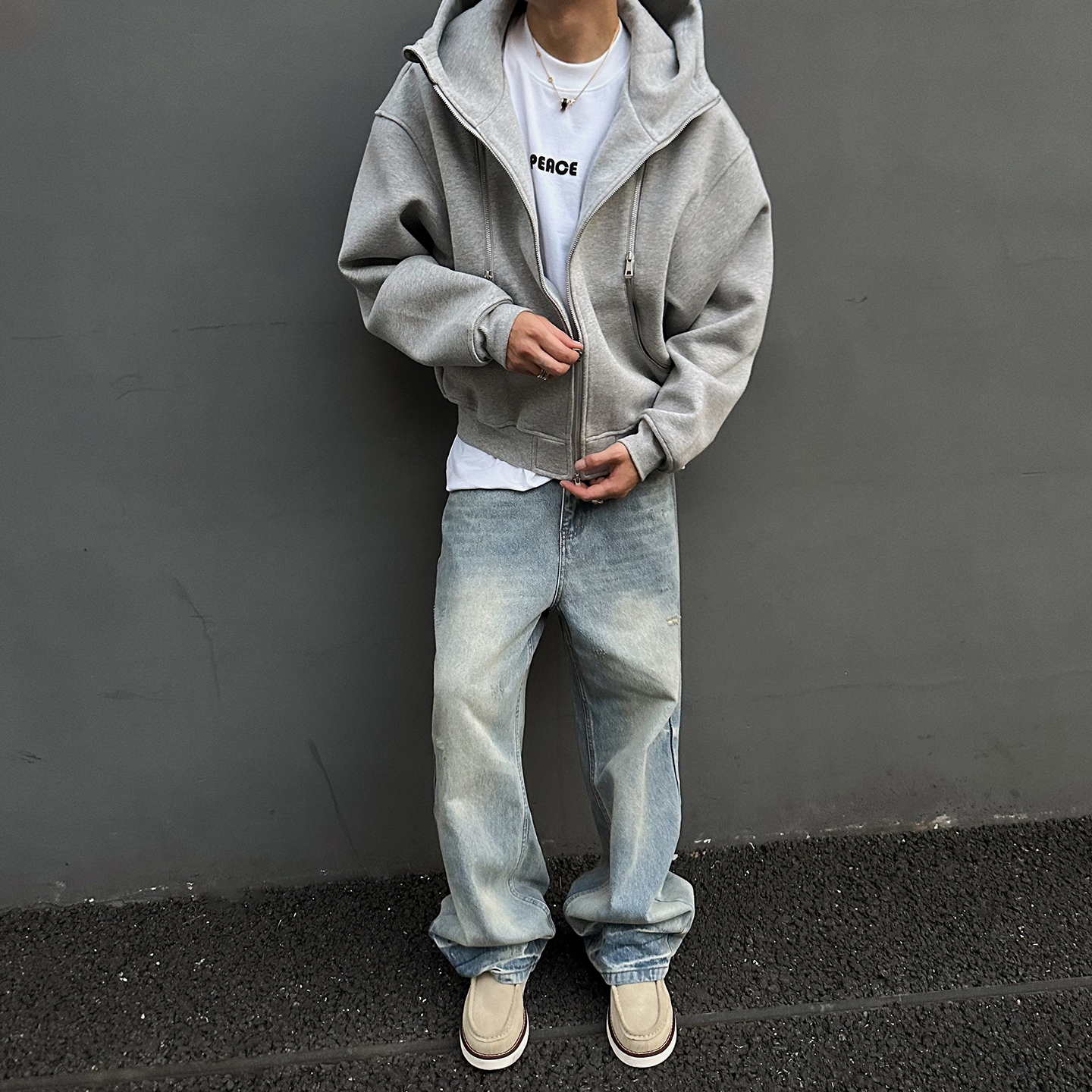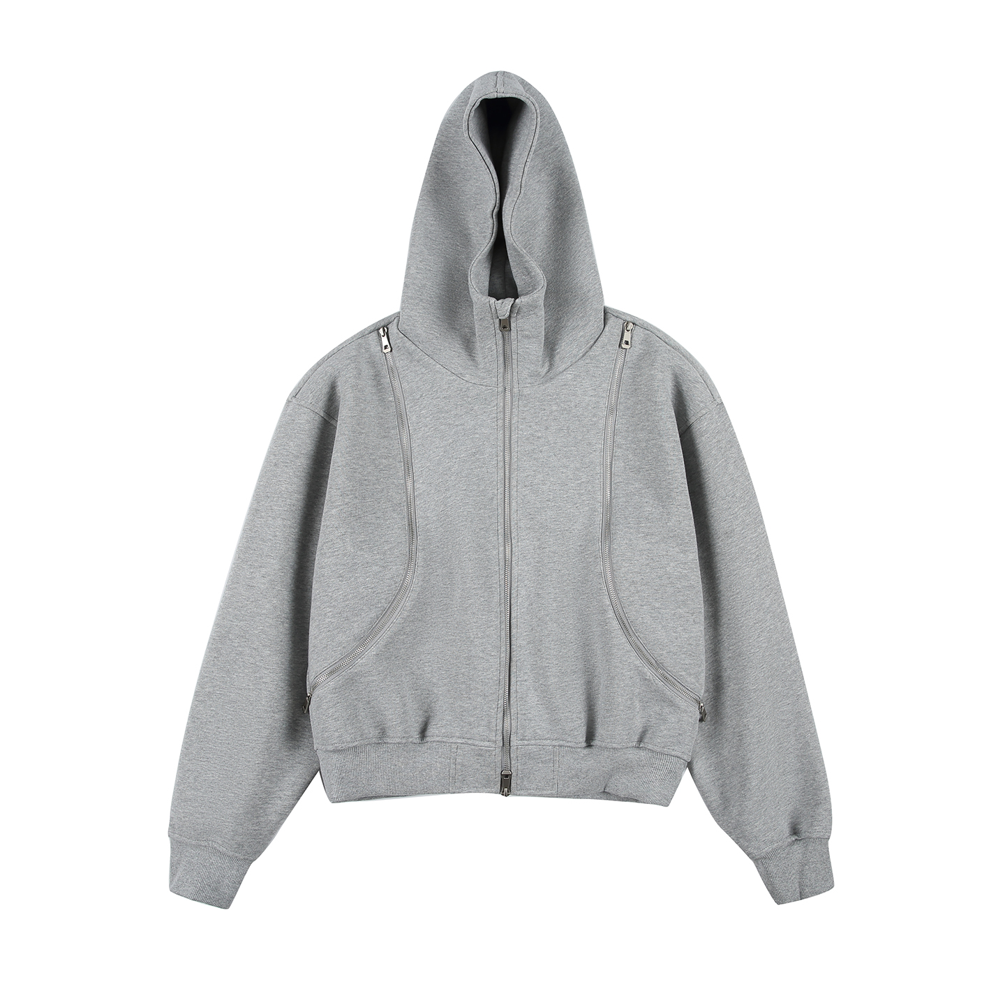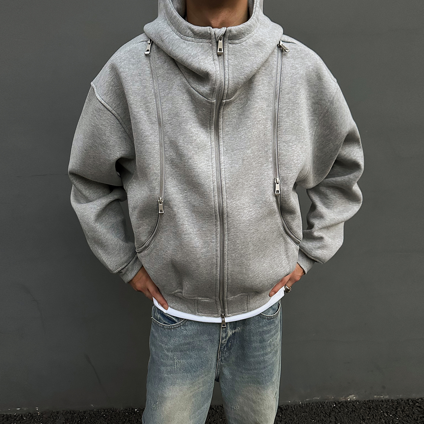 【UNAPS】秋冬500克拉链解构短款连帽开衫卫衣男女宽松廓形厚外套