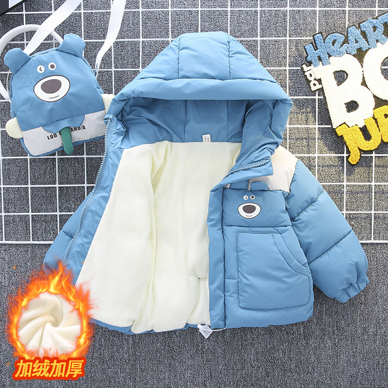 儿童加绒棉衣套装宝宝加厚棉袄冬季洋气男女童棉服冬装超萌一整套