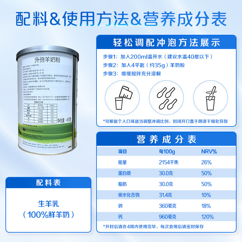 新西兰进口升倍纯山羊奶粉成人中老年孕妇450g*1罐补钙营养送礼