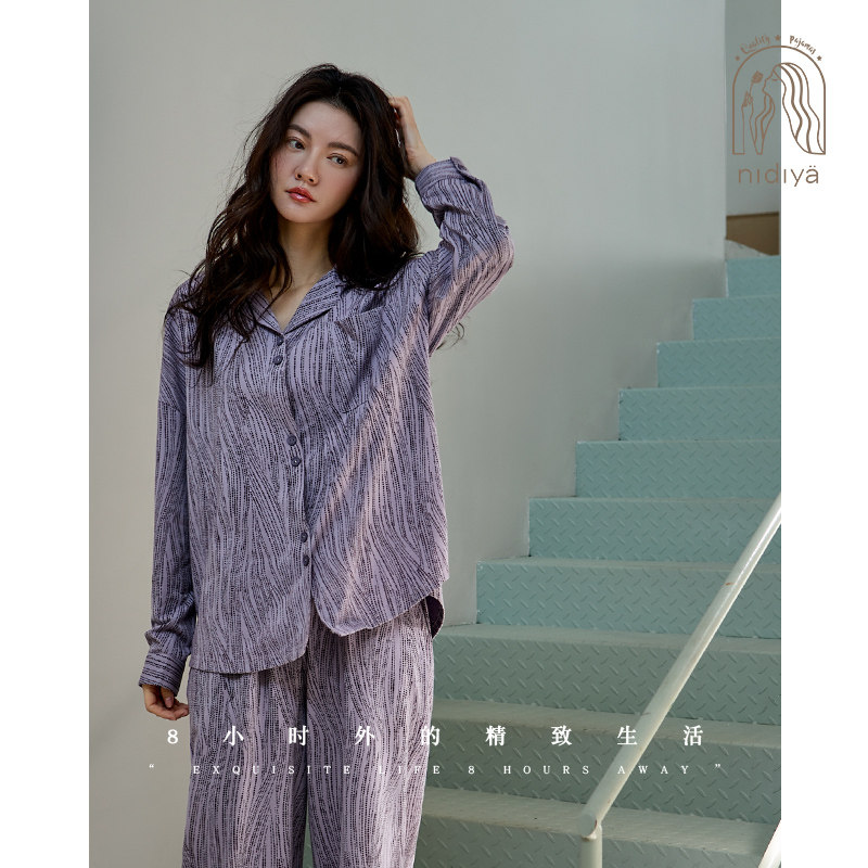 妮狄娅春秋季简约开衫家居服套装