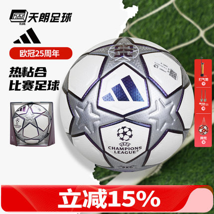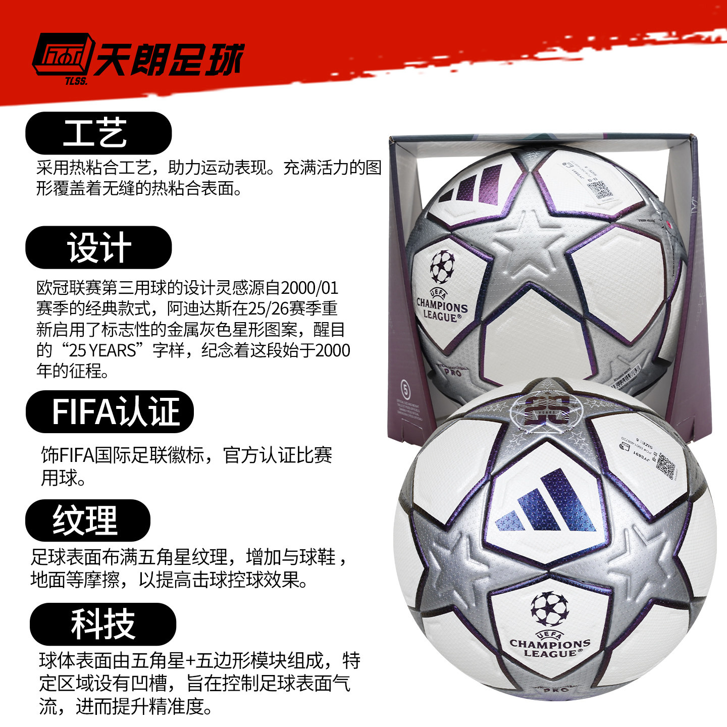 天朗足球阿迪达斯UCL欧冠2526热粘合5号比赛训练25周年足球JY8891