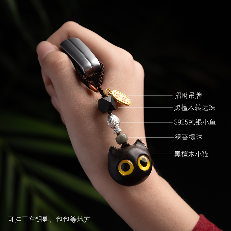 黑檀木小猫挂件汽车钥匙链挂饰可爱猫咪男女网红吊坠创意礼物