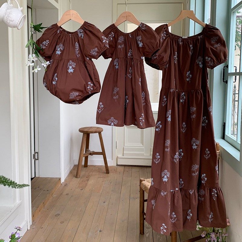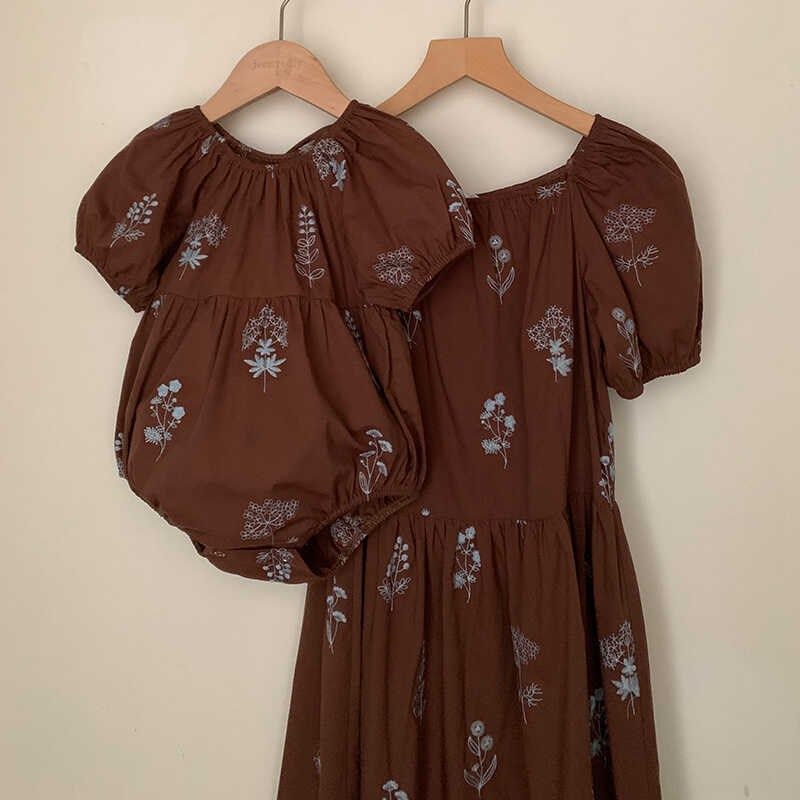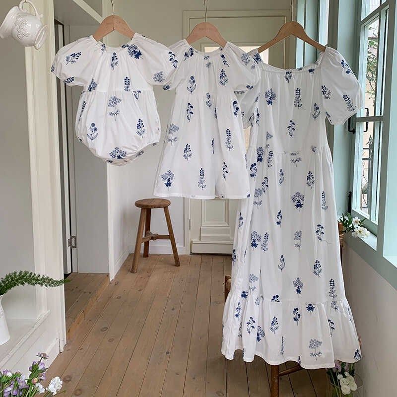 夏季亲子装重工绣花连衣裙母女装洋气女童泡泡袖公主裙女宝宝爬服