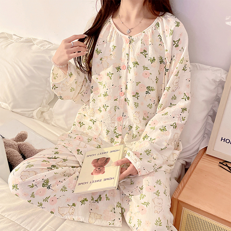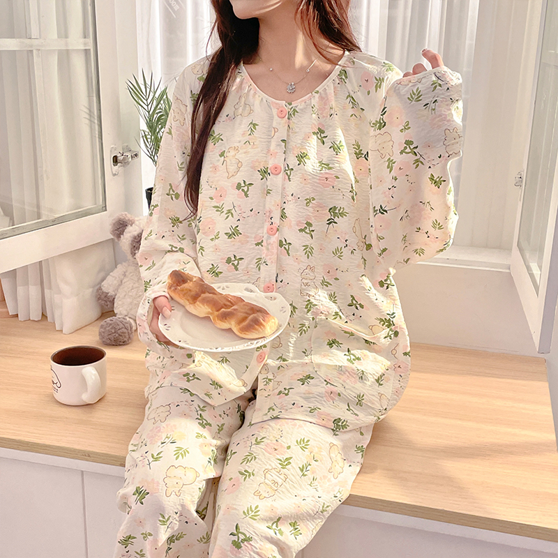 【特惠清仓】月子服春夏季薄款皱皱棉纱产前产后孕妇睡衣哺乳衣