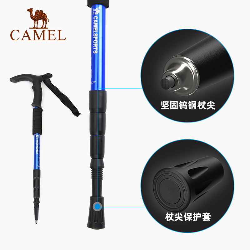 骆驼户外登山杖徒步装备轻便防身多功能伸缩拐杖行山杖