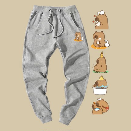 软萌可爱水豚卡皮巴拉卡通周边男女学生情侣定制束口卫裤运动长裤