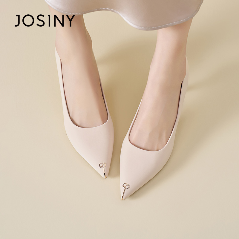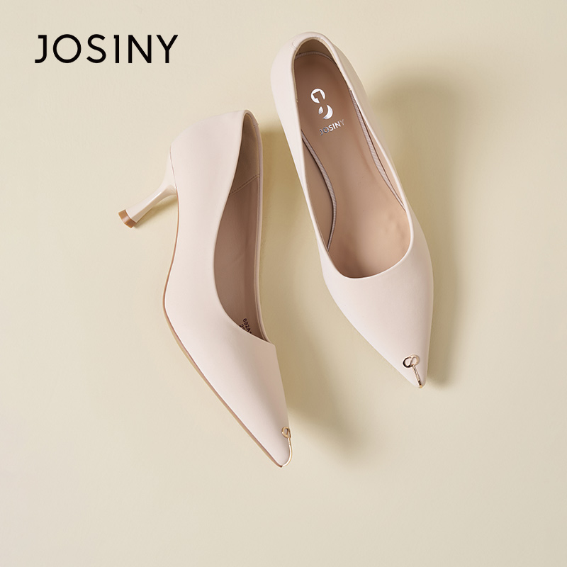 卓诗尼女鞋高跟鞋2026春季新款通勤小皮鞋时尚瘦瘦鞋细跟尖头单鞋